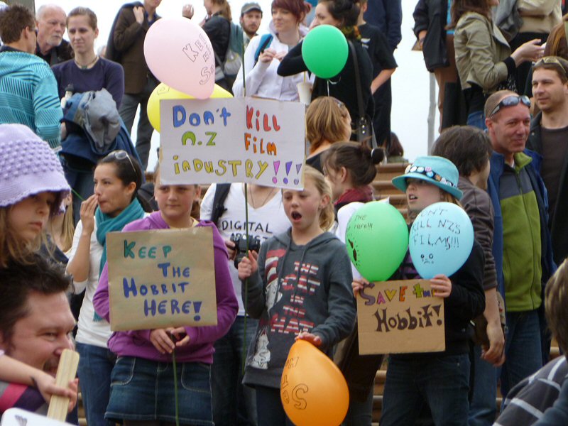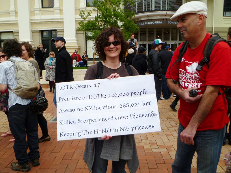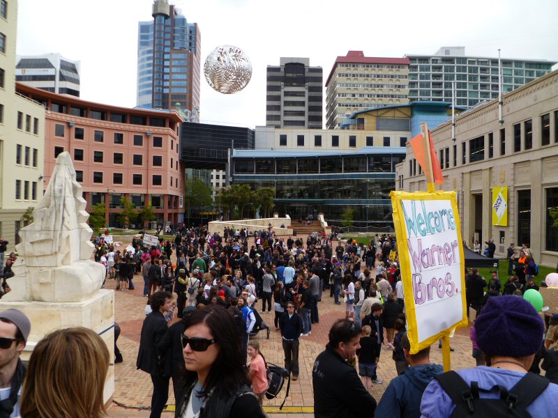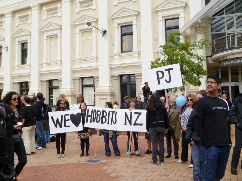 Caras Galadhon writes: Nothing short of the whole host of Mordor (and probably not even it) was going to keep me from today’s rally in Wellington’s Civic Square. After all, this was a chance to be there, see it all unfold, participate and maybe, just maybe, make a difference to the future of The Hobbit.