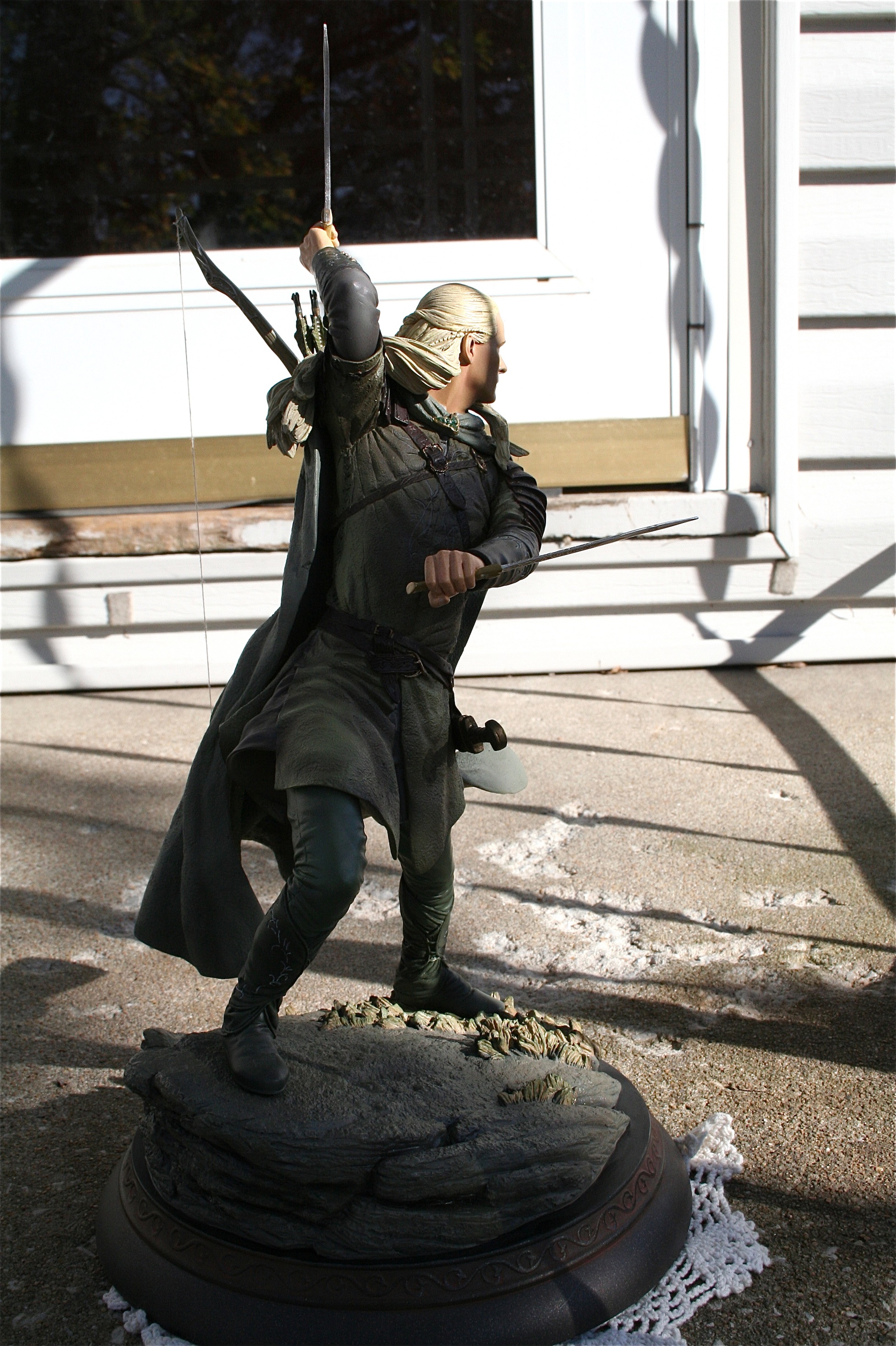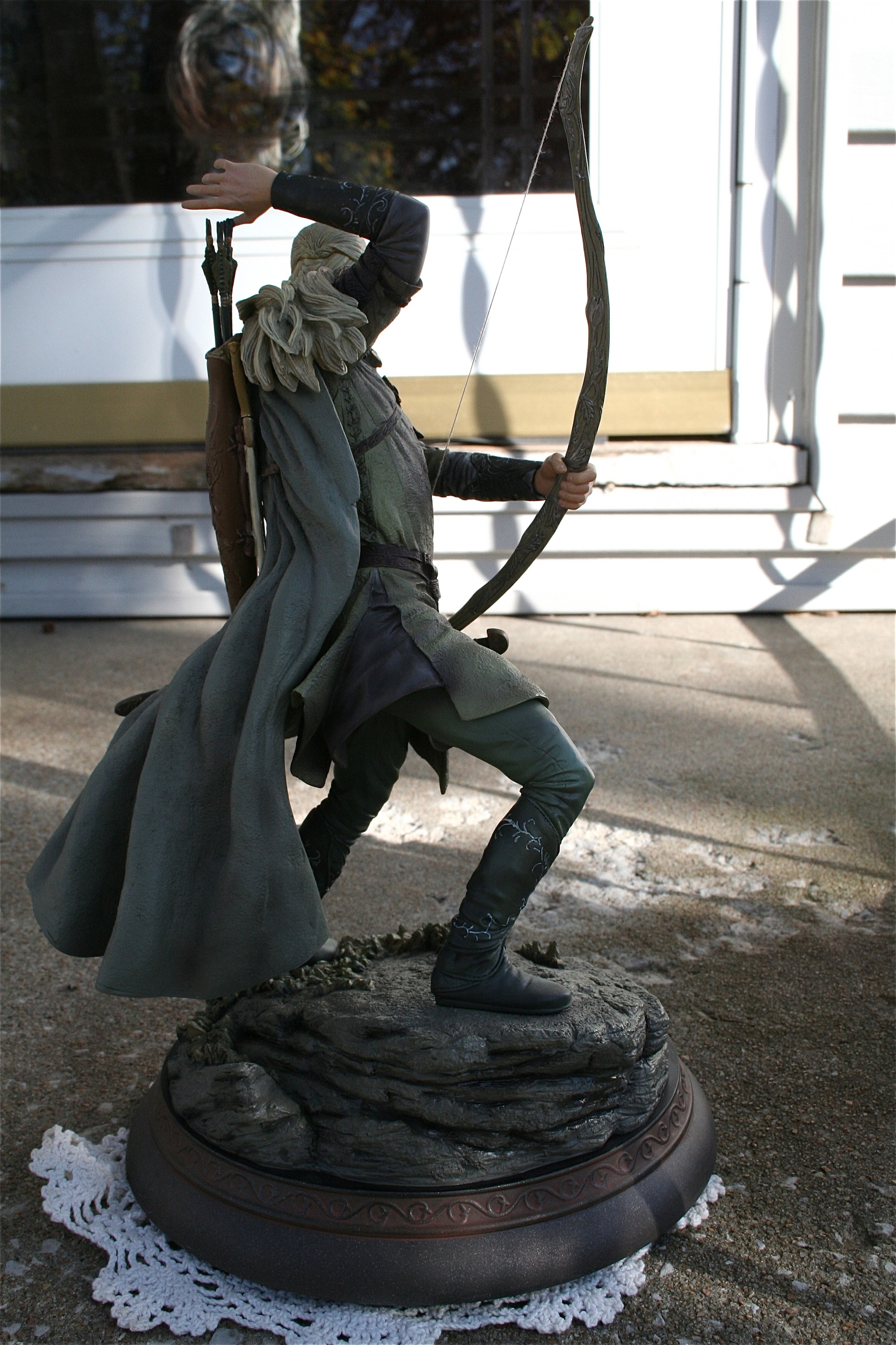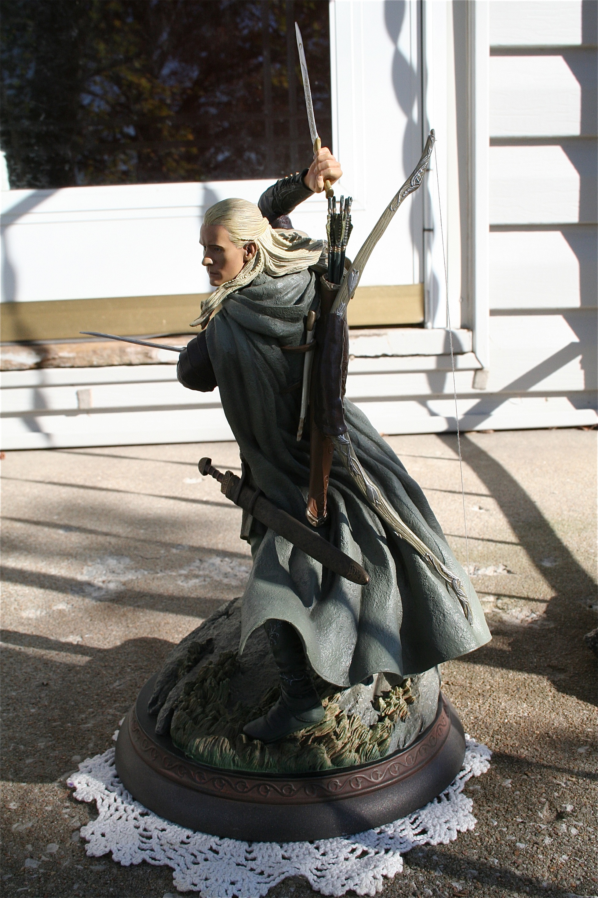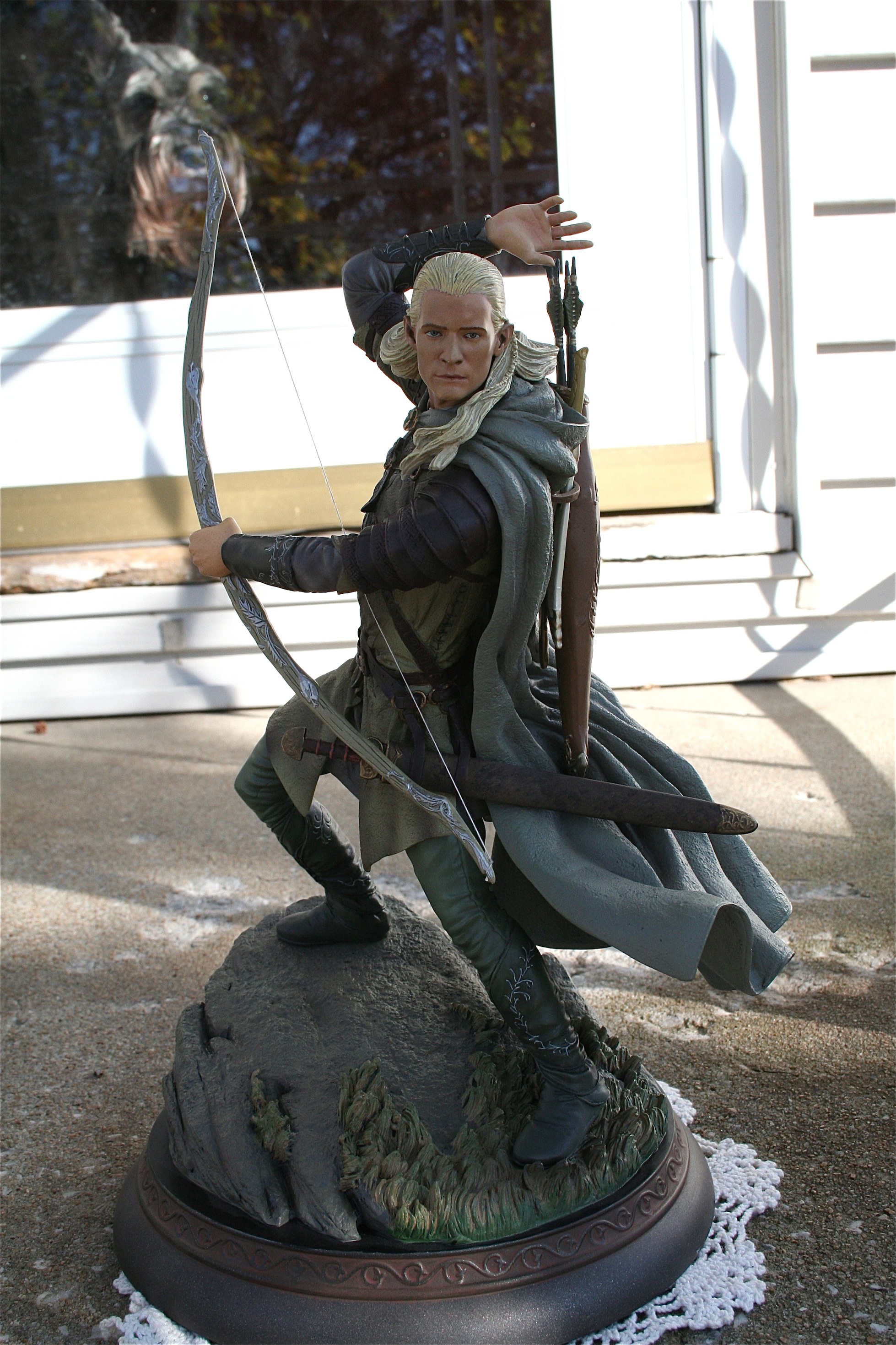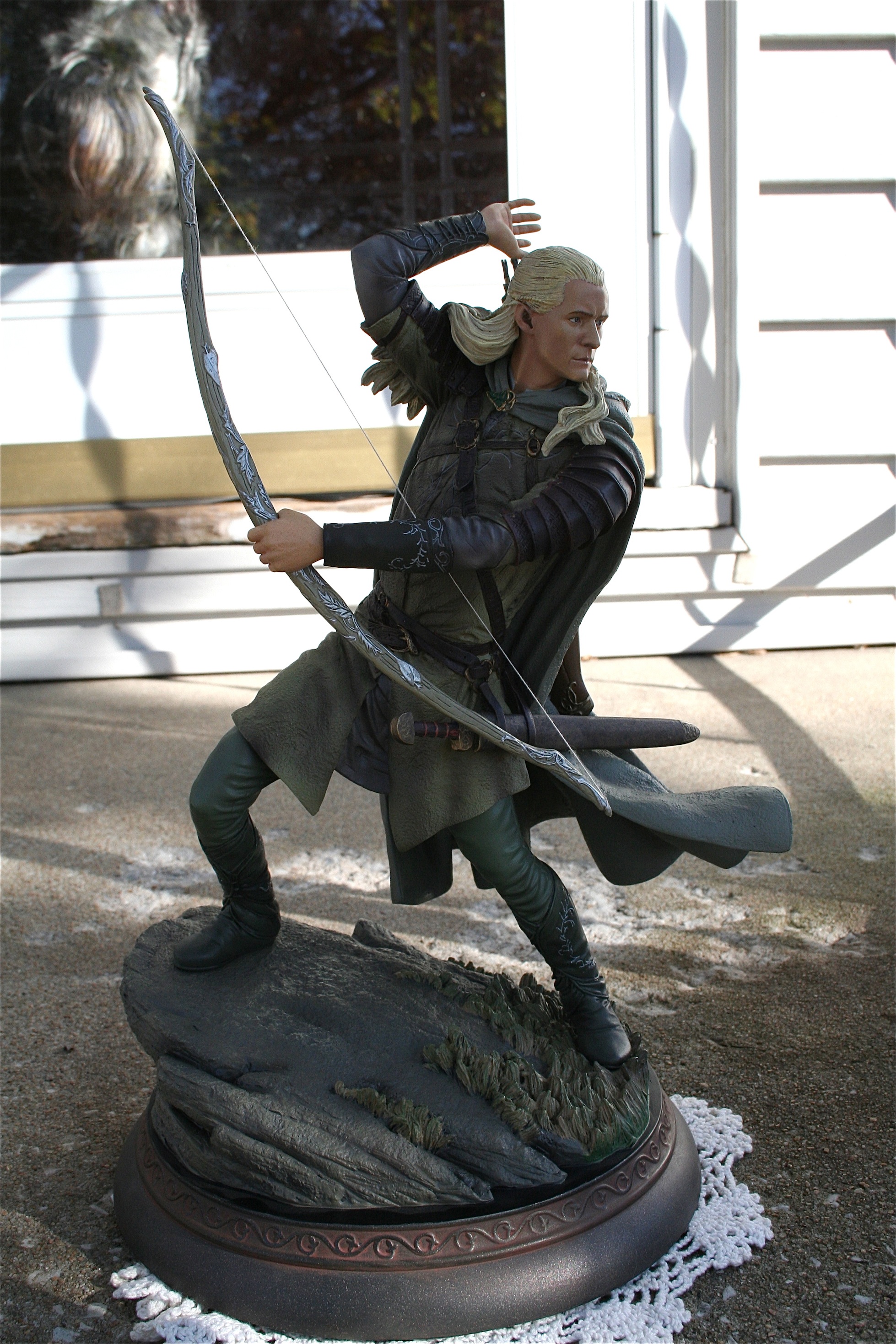 Trevor Grove is the amazing young sculptor at Sideshow Collectibles is responsible for one of the best Legolas statues you will ever see. Mr. Grove’s skill is quiet evident in his ability to not only capture the likeness of Orlando Bloom, but also the elegance that the Elves like Legolas possessed. There is an amazing flow to this piece and you can feel that the Legolas on screen and in Midddle-Earth could have done such a pose.