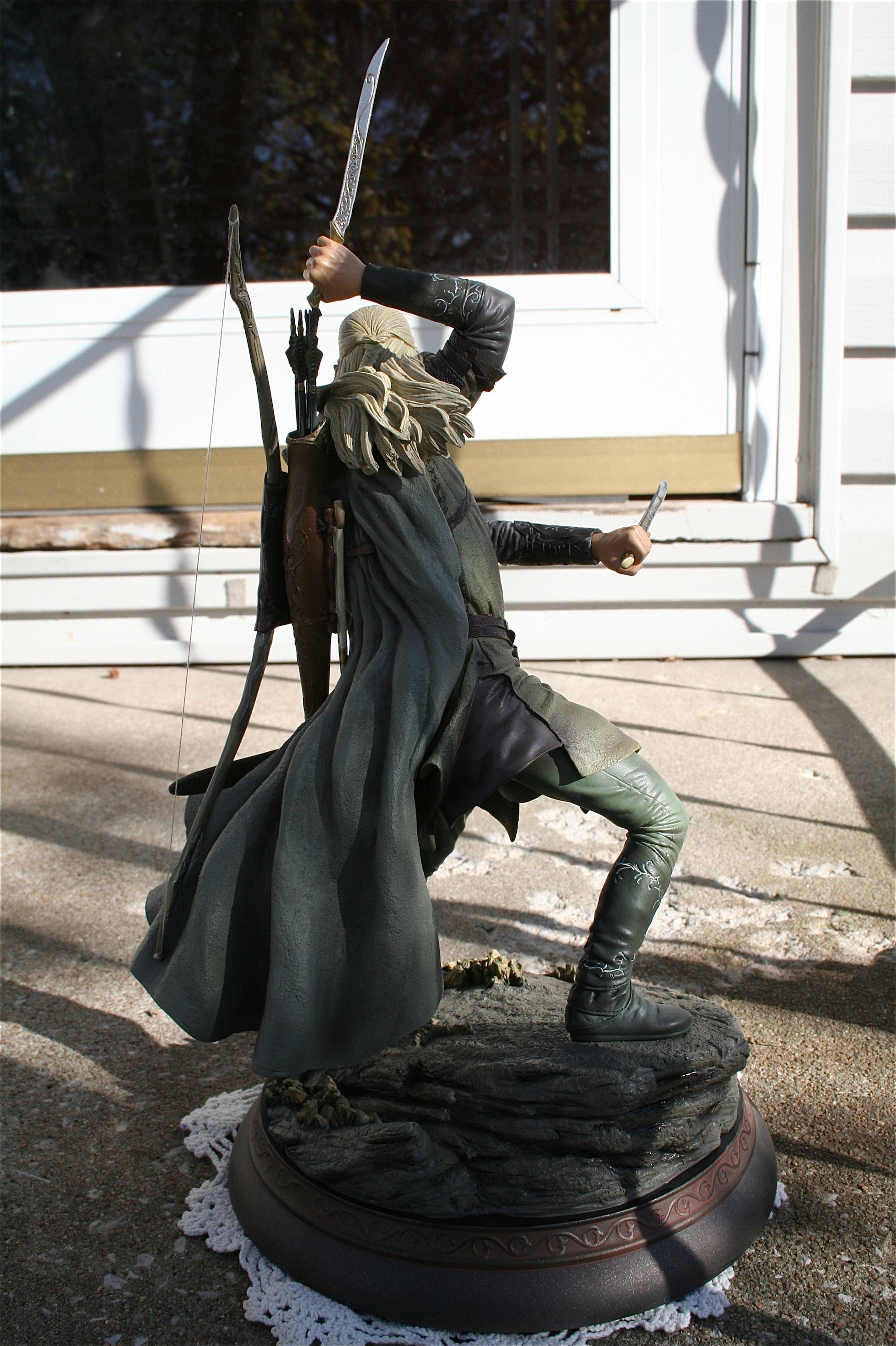 Legolas, much like Gandalf did comes with switch out parts to give you a totally different display. The extras you get are two bows, two swords, and extra sword handles assuming you order the exclusive of his statue. The two bows look like they’re wood these blew me away as much as anything with this piece, and the detail in the swords is an achievement with how complex they look. Overall, this is probably the most complex work in the three statues so far and Mr. Grove pulled it off to perfection.