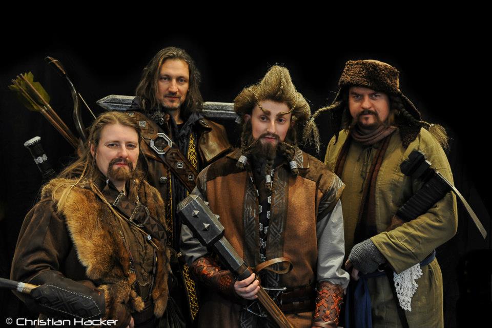 i hope the photos are okay for you. There are Heike = Fili, Sascha = Kili, Rebecca = Nori and Dirk = Bofur. (Fili, Kili and Nori took part in the audience choice award.) We’re part of a LOTR/hobbit reenactment group and have been working on our costumes quite a long time. The Nori and Bofur costumes were finished just in time for HobbitCon.