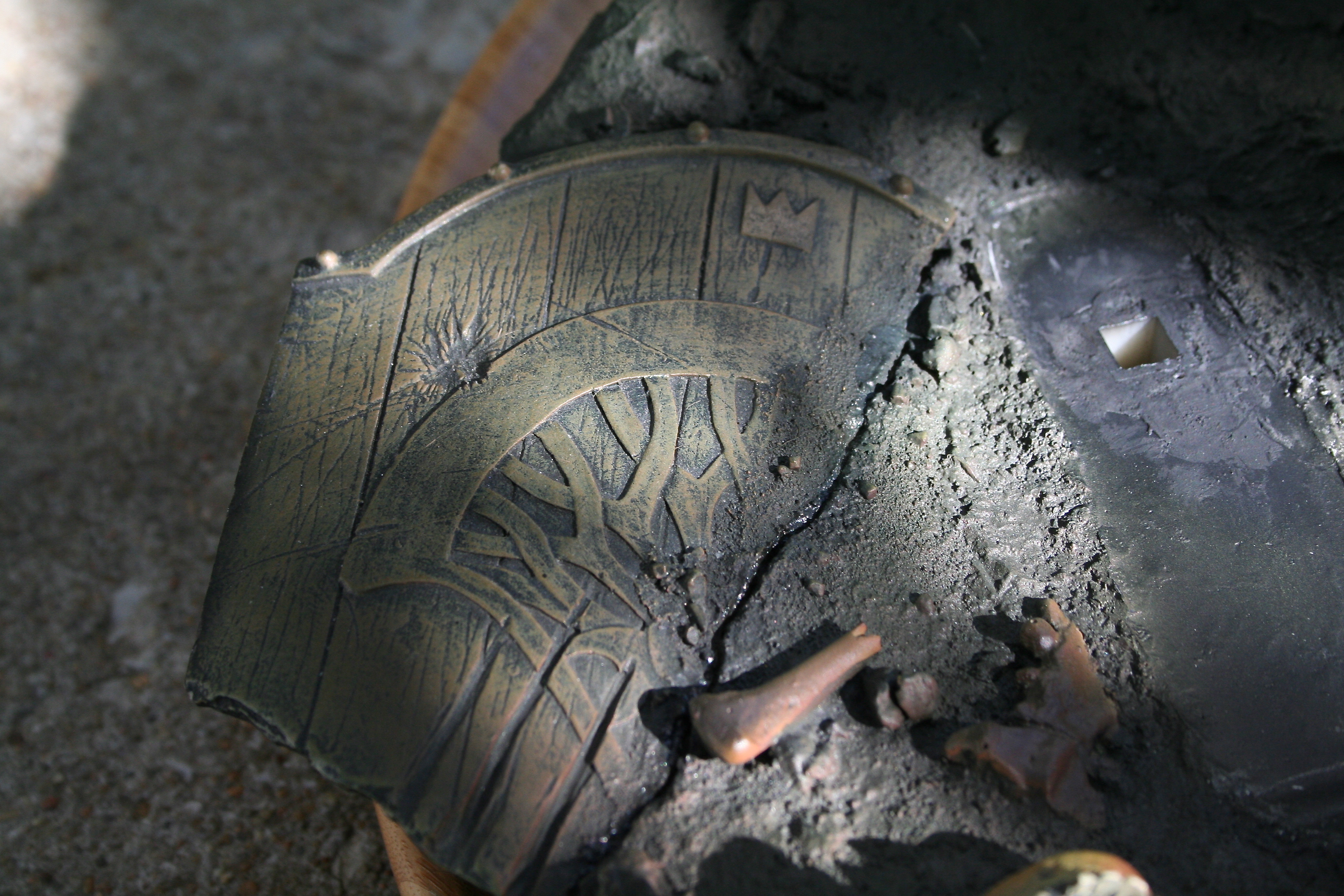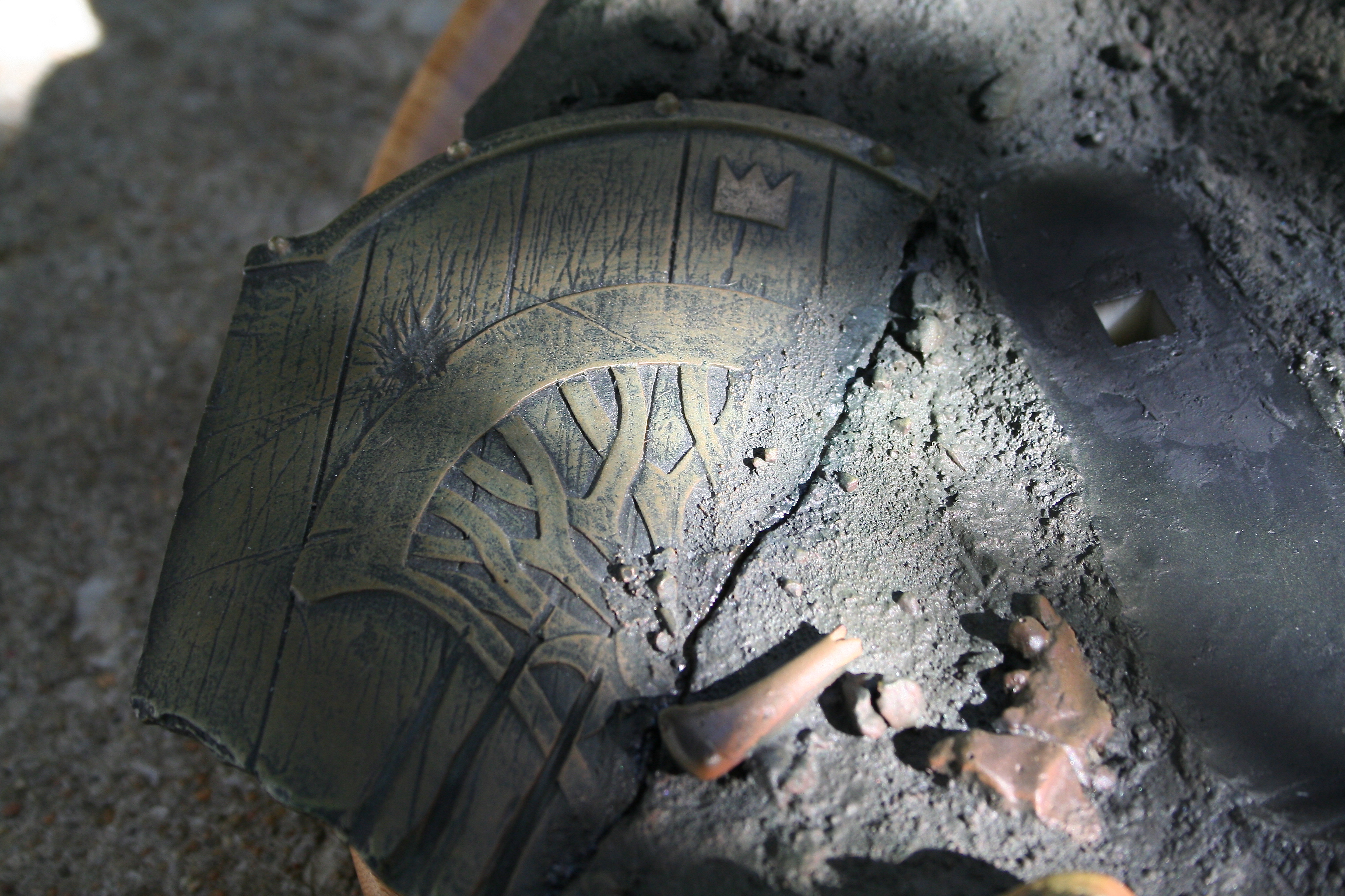 The base is also superb. It reveals the desolate land of Mordor that Sauron surveys, littered with the skeletal remains of the victims of his merciless quest for power. On one side of the base is a skull and a broken and worn Numenorean shield. The other side has even more of Sauron’s victims with a High-Elven Shield and helm, plus two Numenorean helmets with the skulls of the soldiers that once owned them.