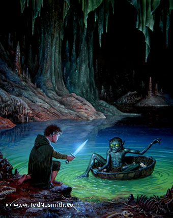 From ADC Publications: Renowned Tolkien Artist, Ted Nasmith, has just sent us three new images ready for our August 2010 Exhibition and we can now unveil these latest Original artwork’s and make them available to the public prior to our FREE ENTRY “Edge of the Wild” Middle-earth Art Exhibition in August. ( 13-16 Aug at The Redesdale Hall, Moreton-in-Marsh, Glos, UK)