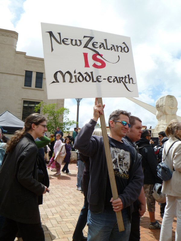 Caras Galadhon writes: Nothing short of the whole host of Mordor (and probably not even it) was going to keep me from today’s rally in Wellington’s Civic Square. After all, this was a chance to be there, see it all unfold, participate and maybe, just maybe, make a difference to the future of The Hobbit.