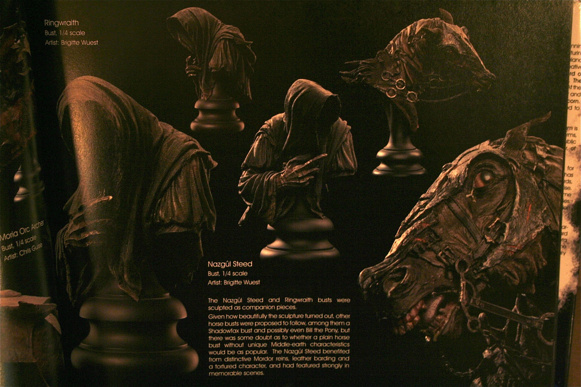 Statues are not the only items Weta made for The Lord of the Rings in order to bring the world of Middle-Earth to life. They would also make items like busts and environments, which allowed collectors to add their favorite characters from The Lord of the Rings from that art form. As was the case in the statue section we shown and told about changes to items or items that would never come to be. One change was to the Prince Isildur bust were the head was moved to give the bust a better angle to see the face. Two busts that would never come to be are the Lady Eowyn and the Warg busts both of which would have only added to the bust line of collectibles. The environment line of collectibles like the others had items we never saw like Zirak-Zigil, Hobbion Factory, and the Moria Cemetery. However, we do get a great look at many of the environments that were made along with some of the environments Weta is making now. As we’ve seen over the last year or so Weta has made The Argonath, Prancing Pony, Bag End, Rivendell, and the Orthanc Pre-Ruin (which is not in the book) so that line is still going strong from Weta.
