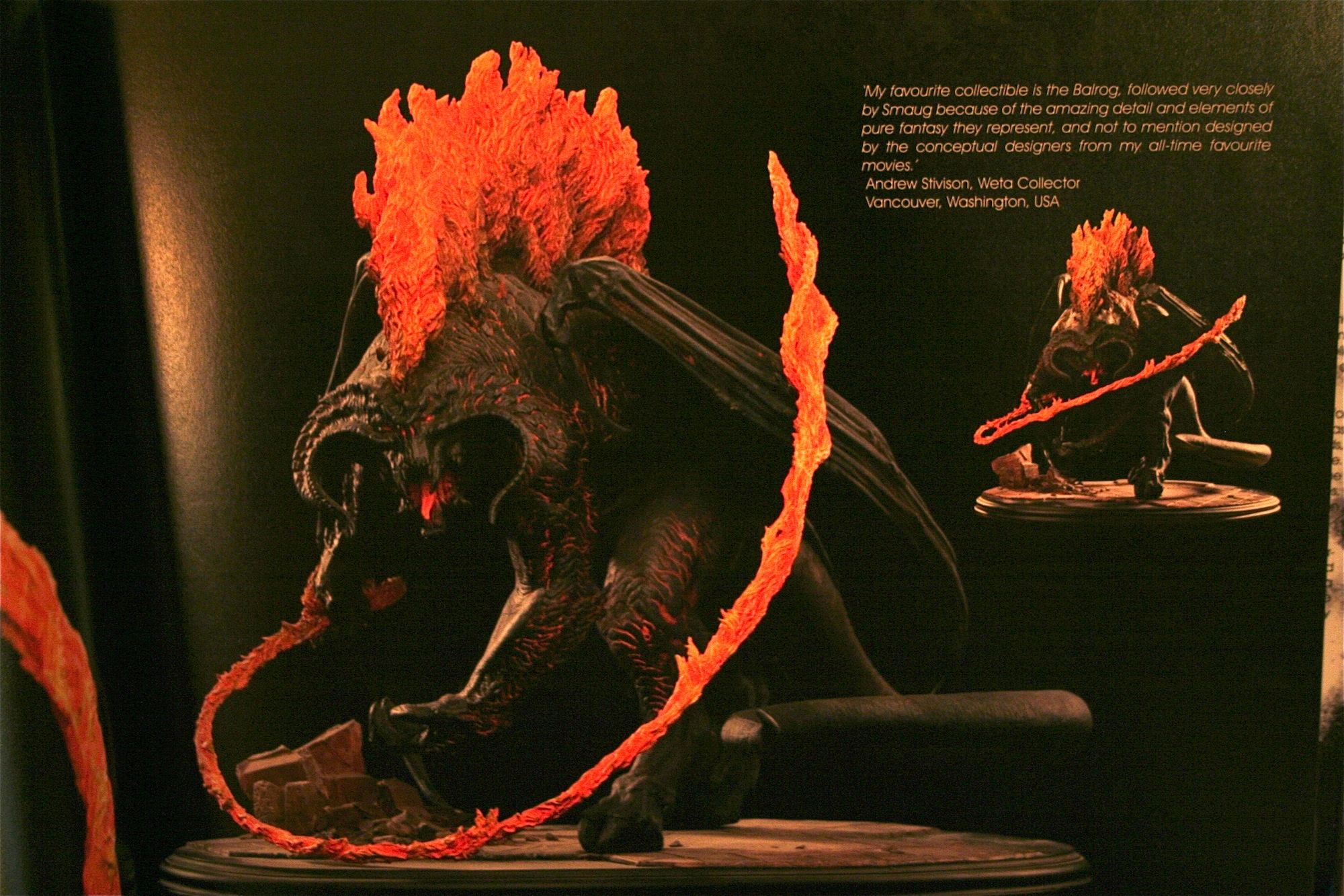 However, these fine artists are also some of the masters behind many of you Ringers favorite collectibles. That’s why I’m writing about this particular item because it shows the amazing work that the creators working at Weta have made over the last ten years. The item I will be writing a bit about is the brand new released at Comic-Con 2011 Weta: The Collectors Guide. This amazing book captures the work Weta has done over the last ten years into one of the best reference books and coffee table books I’ve had the pleasure to own. Just a couple of the reasons I love this book are the amount of pictures taken of the items ranging from The Lord of the Rings to Halo. They’re all beautifully done and show off just how great the work coming from Weta has been over the last ten years. The other being the amount of information in the book not just on the collectibles, but the people behind the scenes the artists themselves will give collectors a real insight into who made these pieces. Finally, a nice addition is quotes and pictures from collectors who own many of these pieces. It’s nice to see people who I call friends pictures or quote from people who say what I’ve felt when looking at these items.