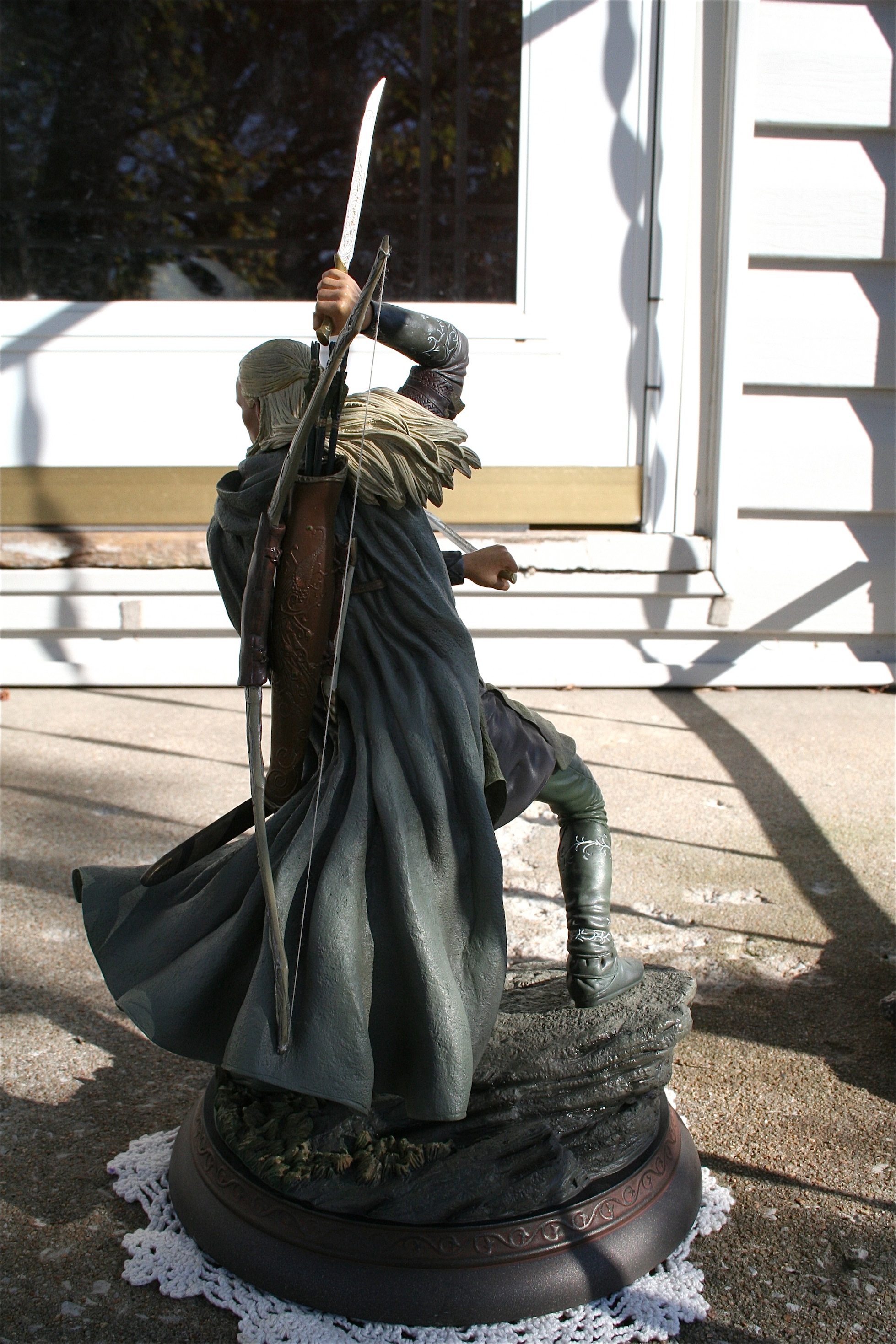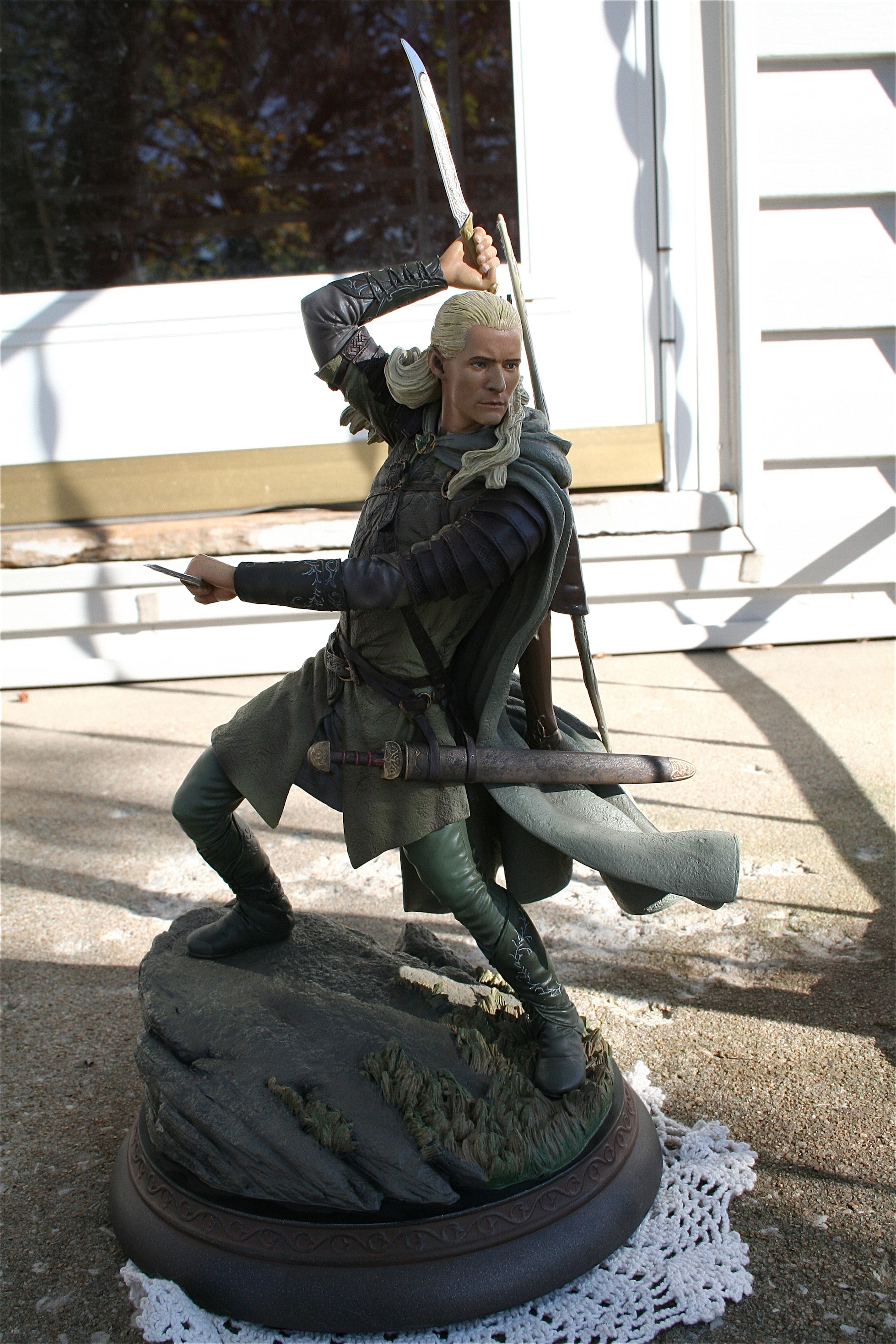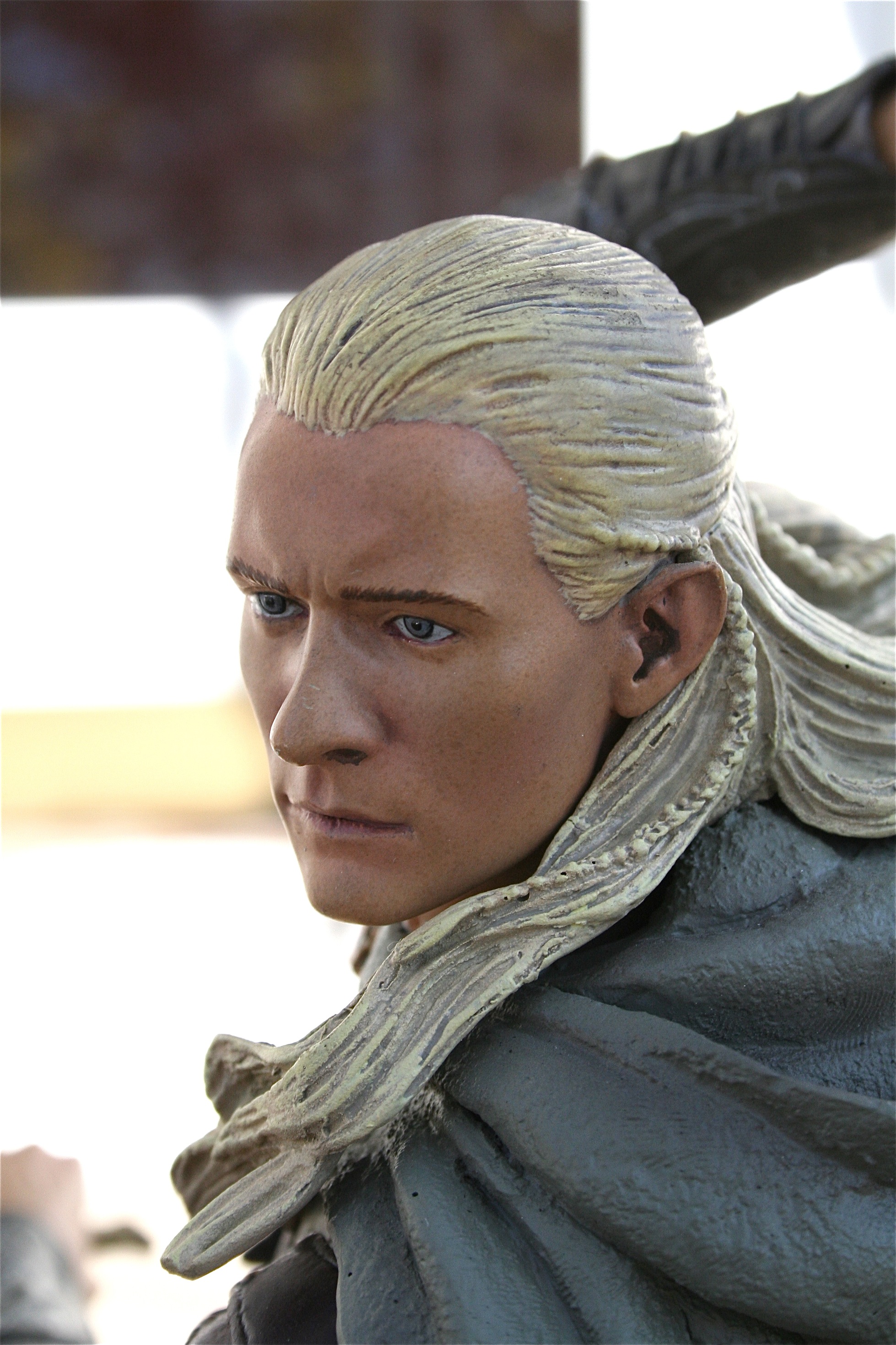 Trevor Grove is the amazing young sculptor at Sideshow Collectibles is responsible for one of the best Legolas statues you will ever see. Mr. Grove’s skill is quiet evident in his ability to not only capture the likeness of Orlando Bloom, but also the elegance that the Elves like Legolas possessed. There is an amazing flow to this piece and you can feel that the Legolas on screen and in Midddle-Earth could have done such a pose.