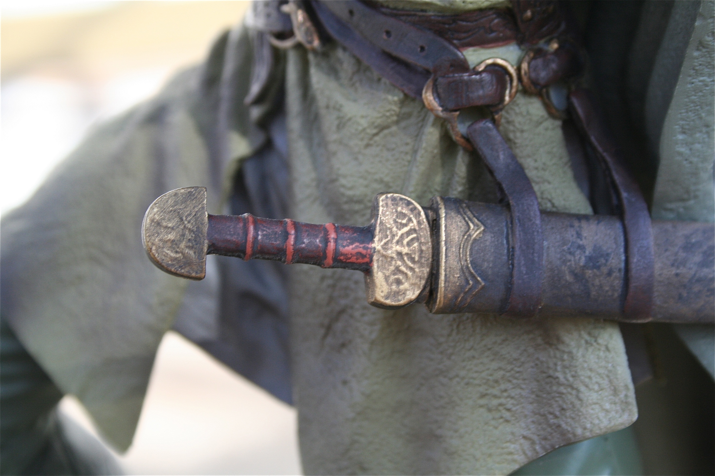 In order to capture the detail Legolas had in his outfit the work must be done on a high level. Well, mission accomplished because there is no detail lost within this collectible. The cloth parts are painted to work with the sculpt in order to look like cloth, and all the leatherwork comes out looking like leather. Finally, the intricate details within the swords, bows, and vembraces are done in stunning fashion to make them looks like their real life counterparts.