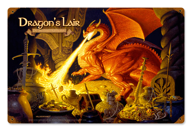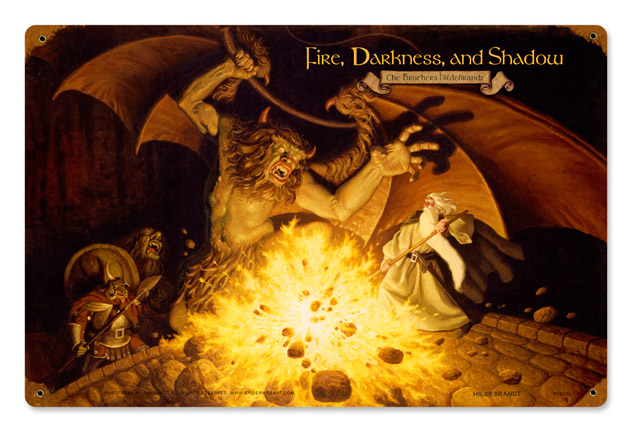 SpiderWebArt Gallery, who have represented the Brothers Hildebrandt’s Tolkien Art for the past 35 years, are making publicly available all this art from the 1970’s. Fans will have many choices of format, including Canvas Giclees hand signed and numbered by Greg Hildebrandt, a few Black and White Giclees on watercolor paper, and vintage Tin Signs with the art on it. The Giclees will be available in a Limited release, with only a few prints of each of the designs. This writer has a few favorites among the Calendar images, including Galadriel’s Ring, the Unexpected Party, the Pillars of the King, and Smaug sitting on his treasure and the Evil Tower of Cirith Ungol.