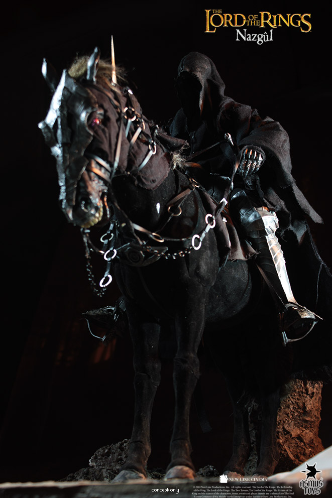 Asmus Toys has been churning out lots of figures in their 1:6th action figure line for The Lord of the Rings Trilogy. We’re pleased to share the next awesome figure that you can find for pre-order right now from various retailers. The latest figure – or I should say figures – Middle-earth fans can add to their collection is one of Sauron’s most trusted servants, the Nazgul. If that’s not enough for you, fans can also order a 1:6th scale Nazgul Steed that your Ringwraith can fit on, to recreate the methodical tracking down of Frodo and The One Ring. The Ringwraith comes in at a price of $130 by itself, Horse $150 by itself, and if you want both, deals can be had for $250. All of these items will be out by quarter four of this year, and we will update this post as we find deals for Middle-earth fans.