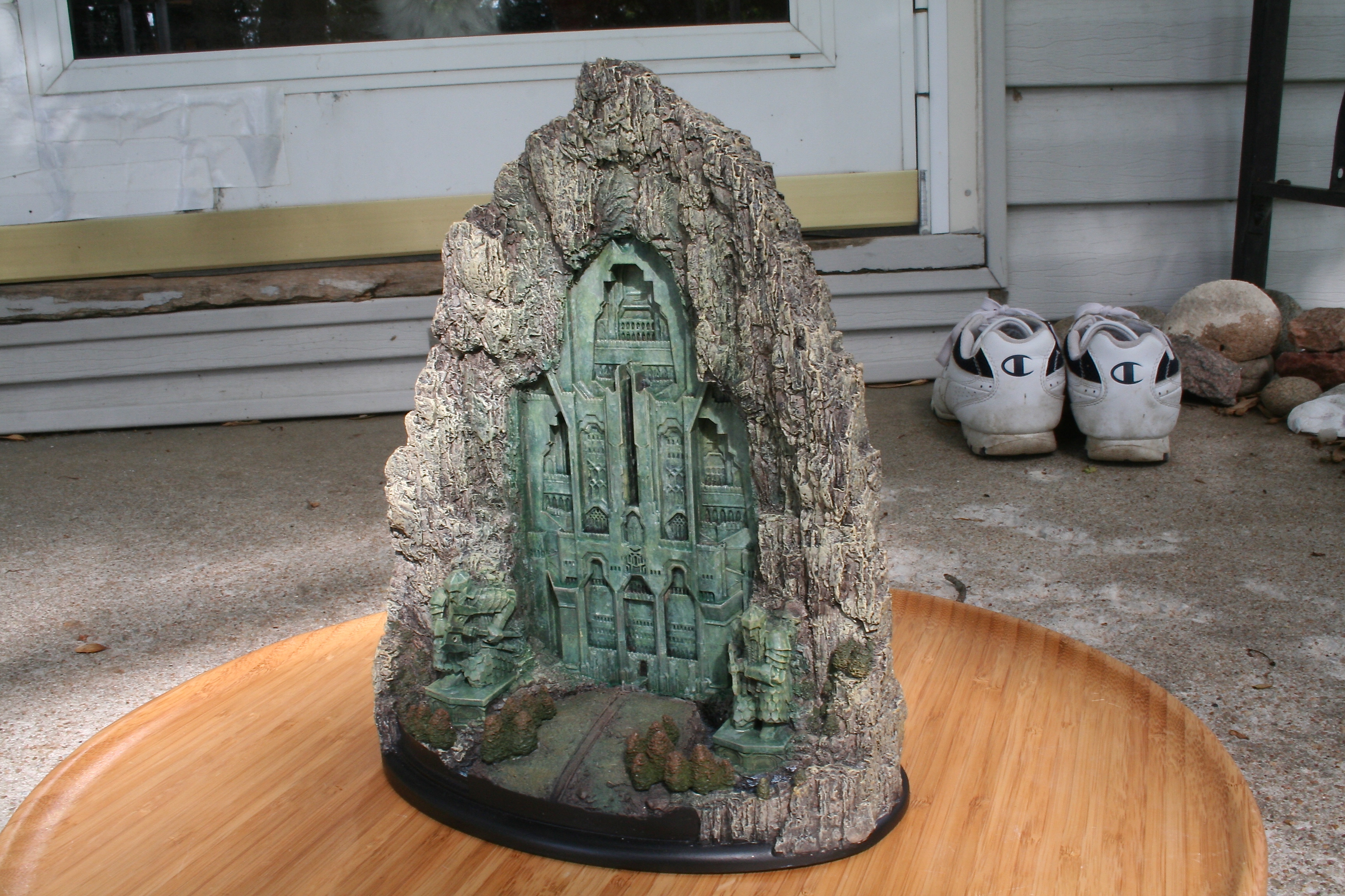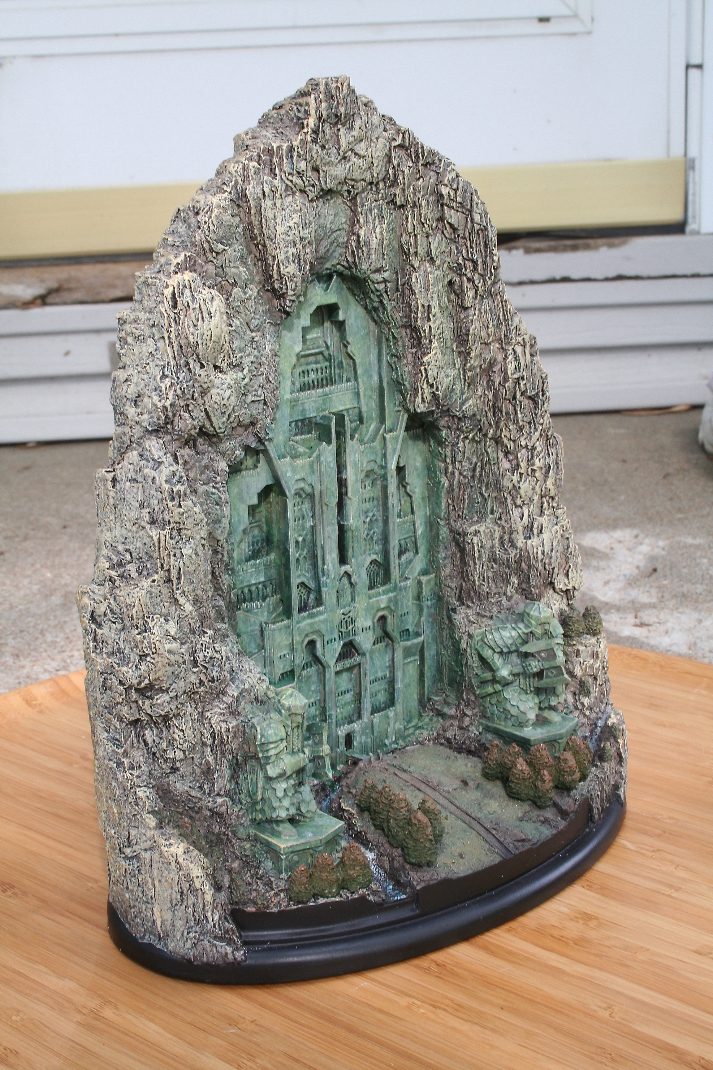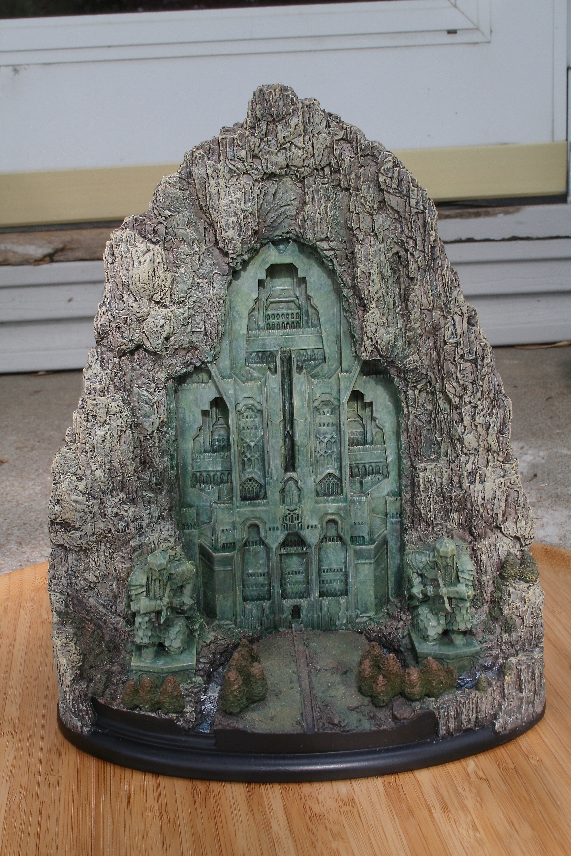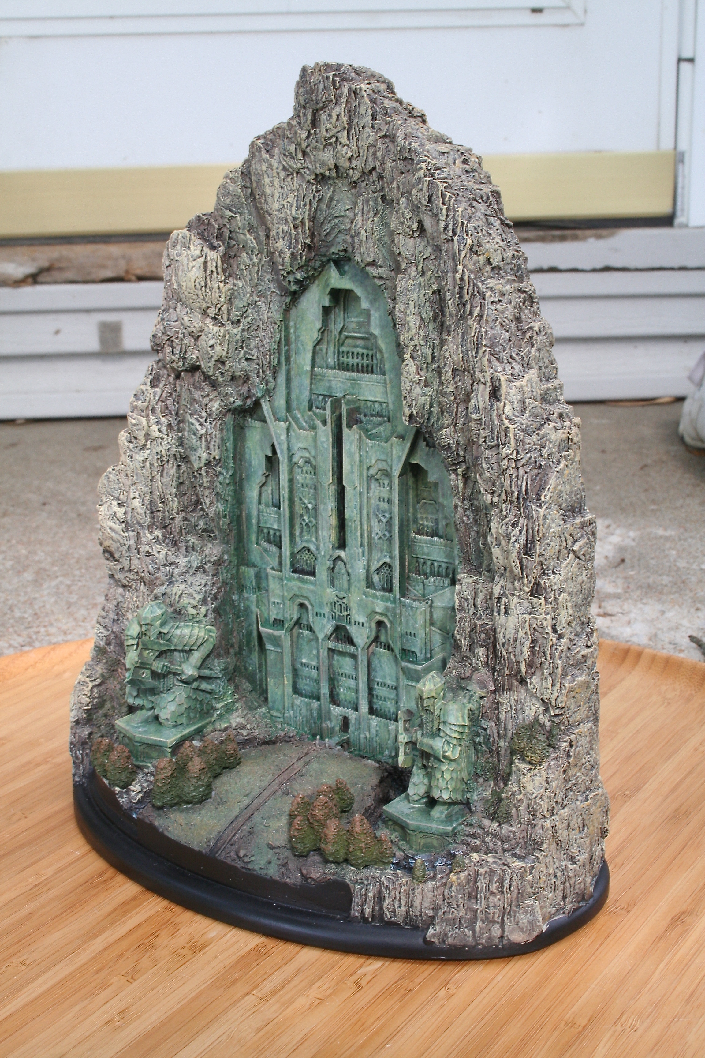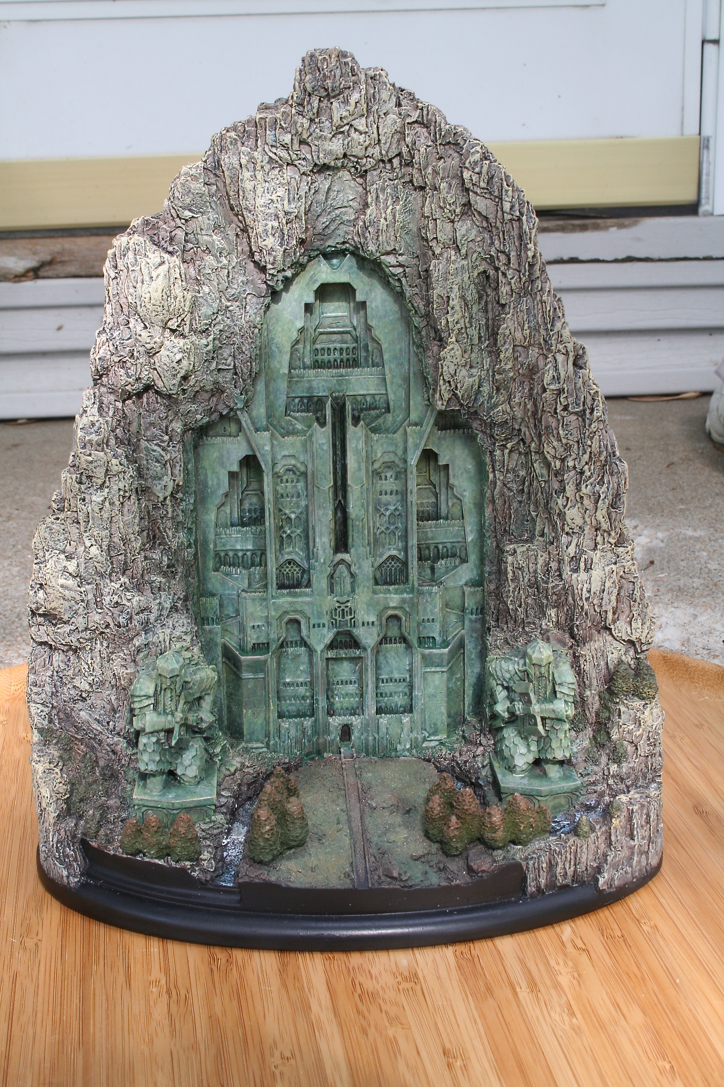 We’ve got another video review for you today, of the one environment I’ve been waiting to get my hands on since I saw The Hobbit: An Unexpected Journey in theaters. One of my favorite things about this particular environment was the front part of it that you could see standing outside the mountain, with that great Dwarven design, as well as those amazing Dwarven Guards. Finally, after a long wait we can now add at least this part of Erebor – with hopefully more to come, with something similar to the Moria Environment from The Lord of the Rings statue line. The Front Gate of Erebor comes in at $199 as well as being an open edition, so if you need to save a little you have some time. The size of this environment comes in at 10.6″ tall x 8.9″ wide x 5.7″ deep and weighs 6.9lbs.