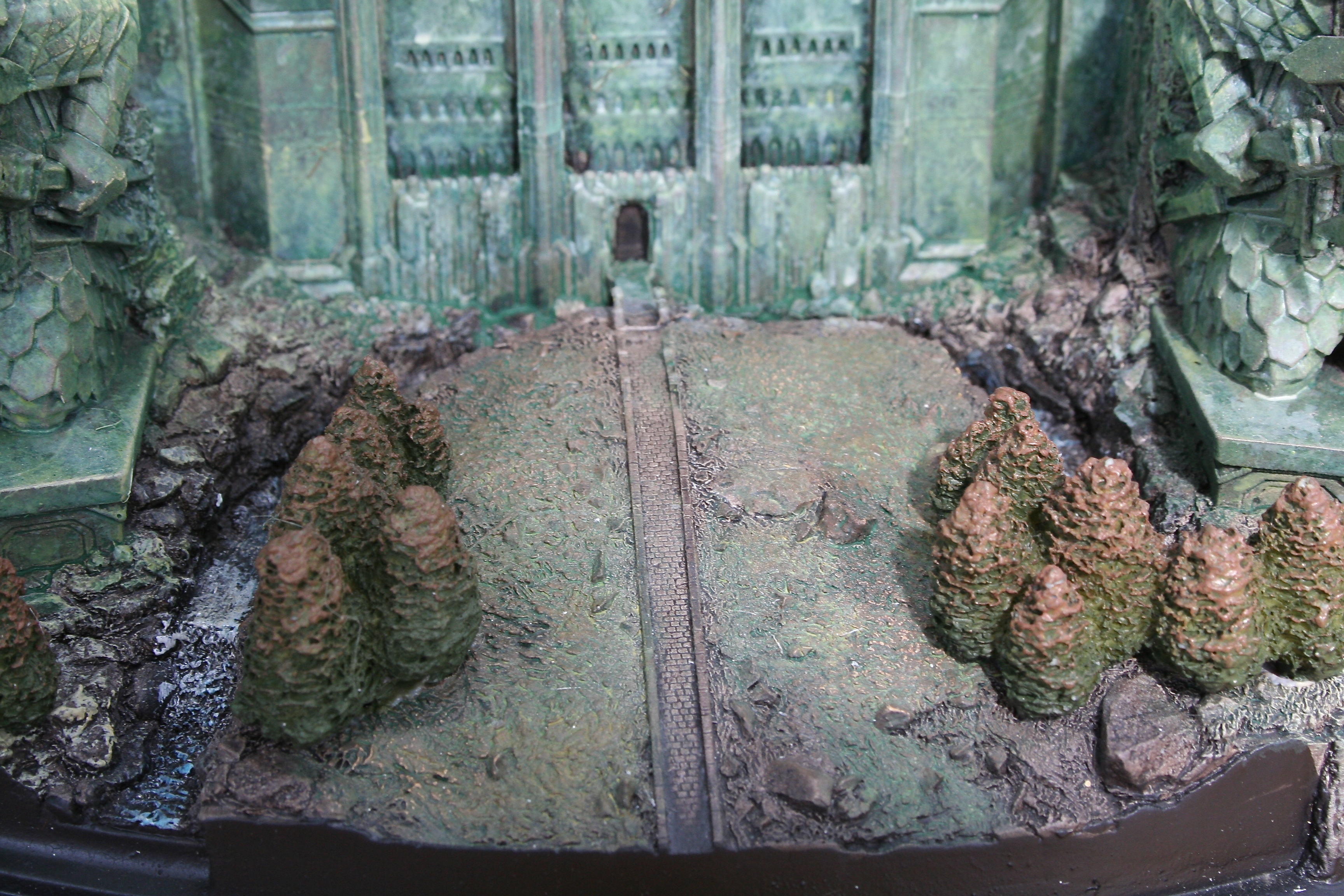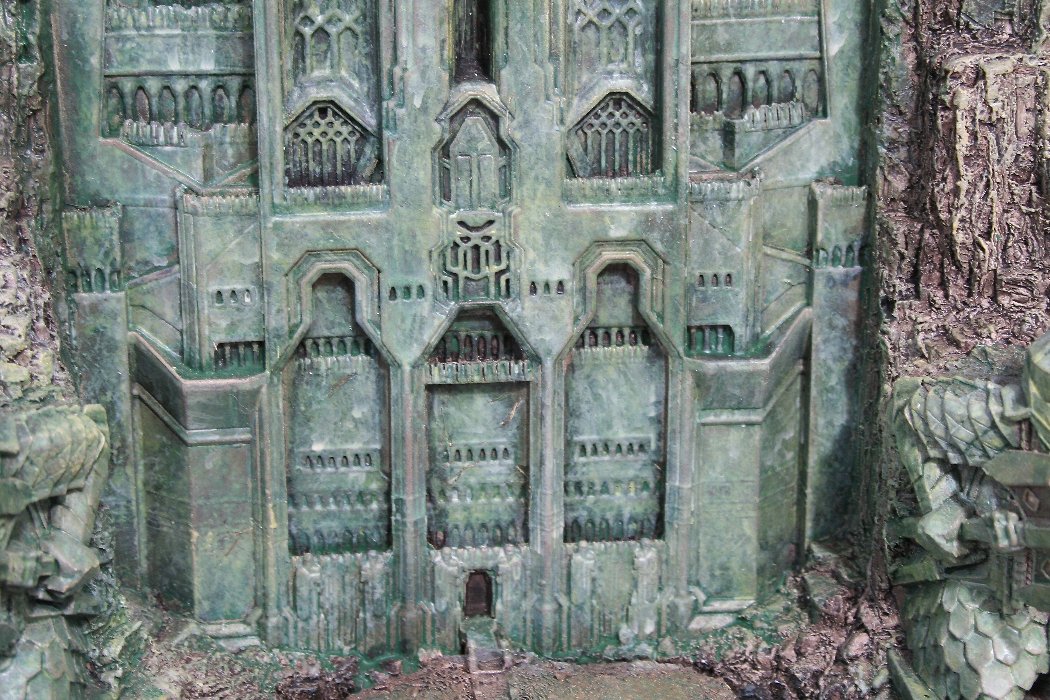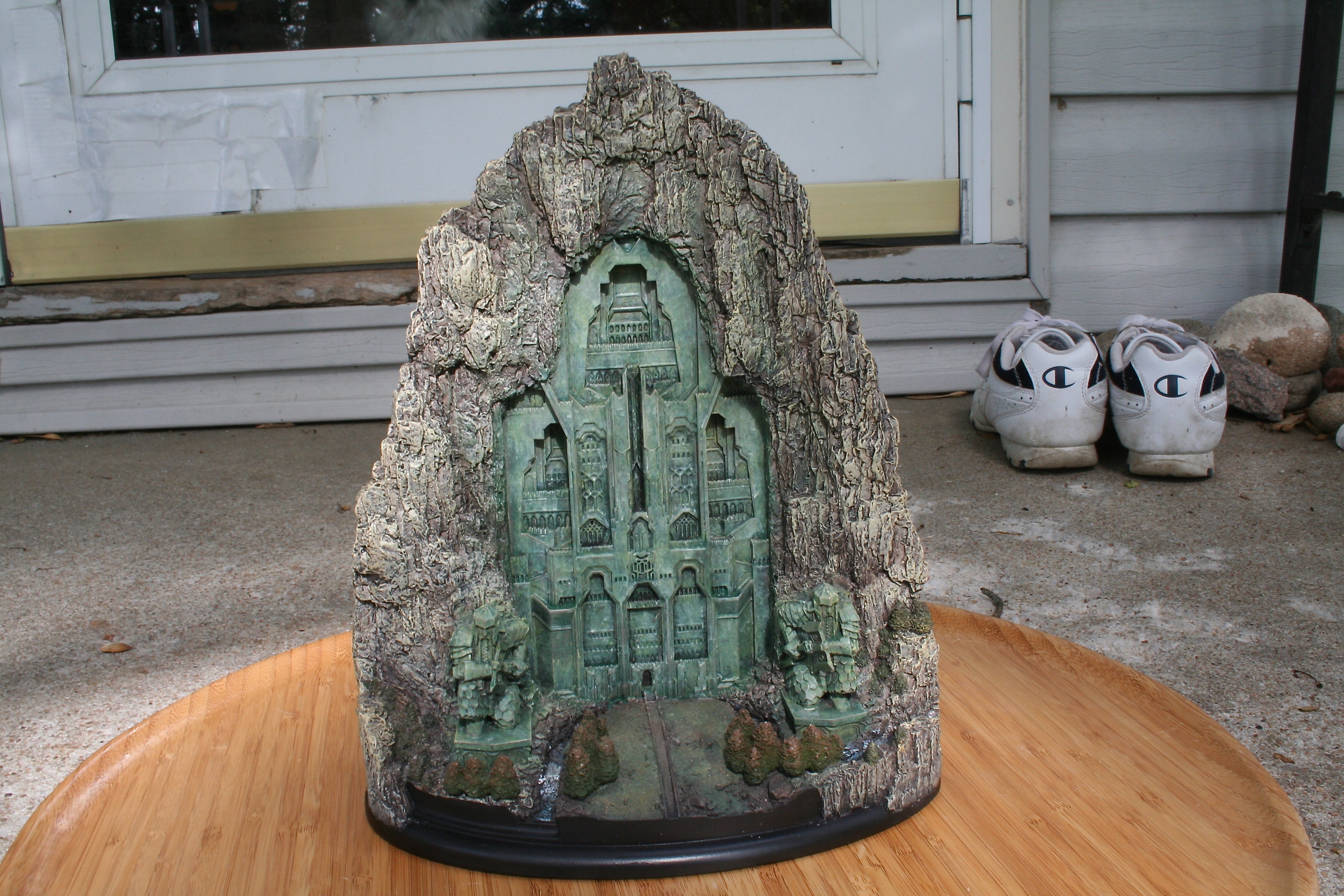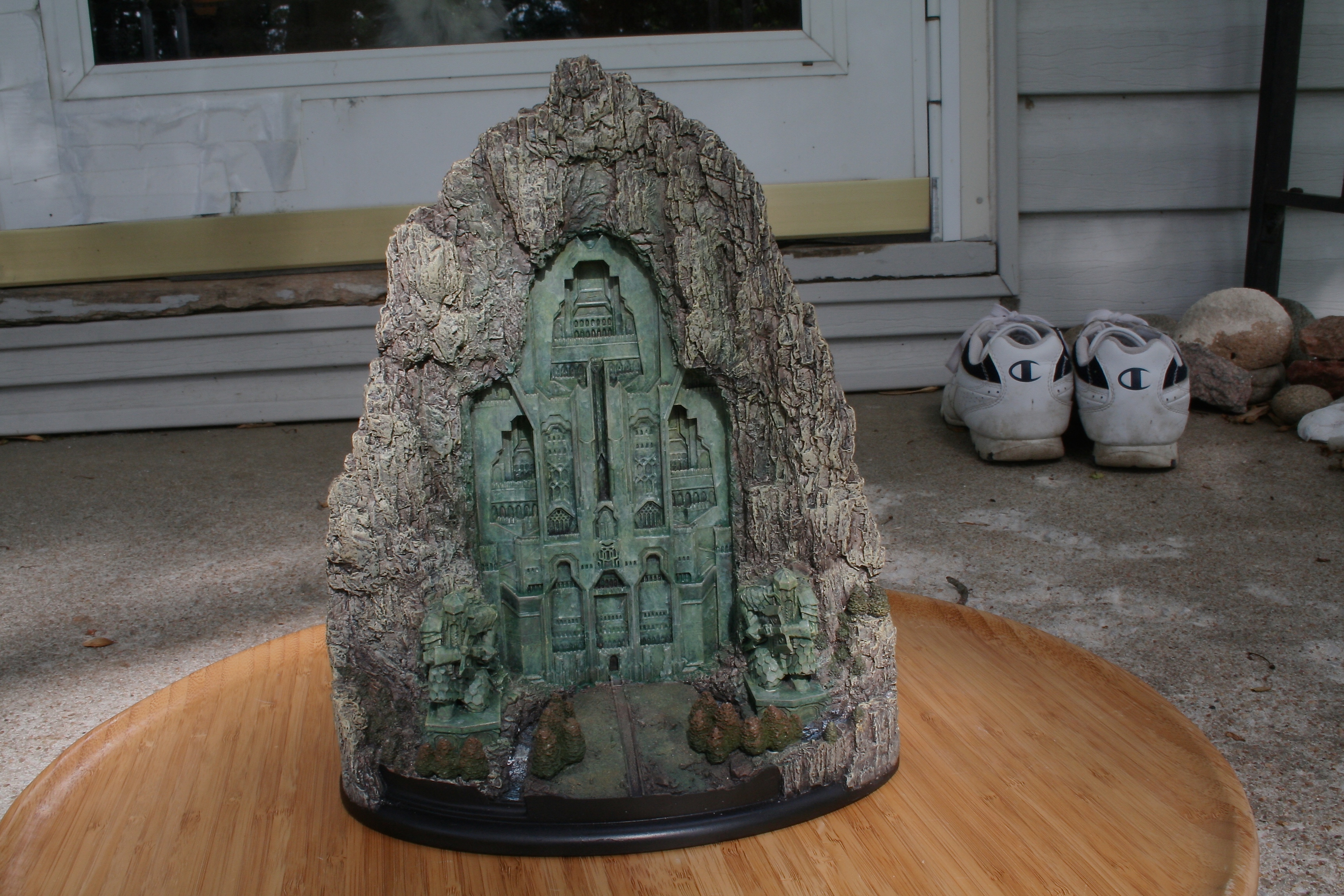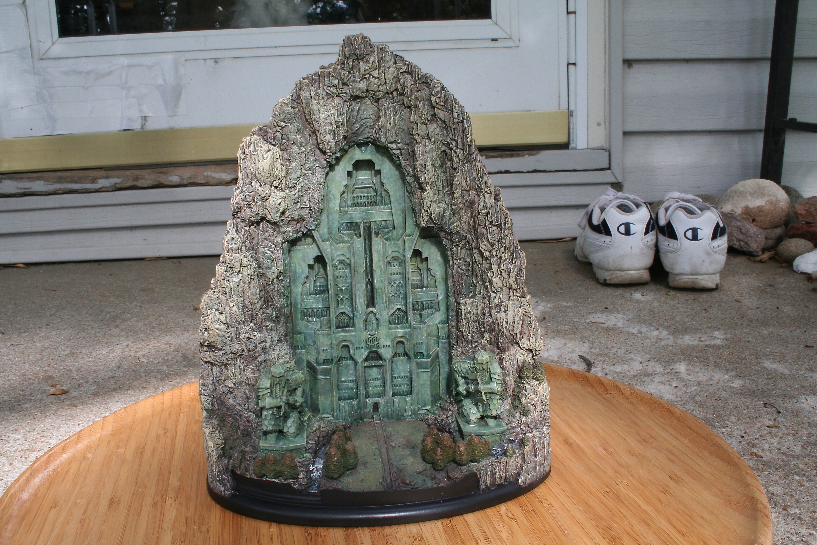 We’ve got another video review for you today, of the one environment I’ve been waiting to get my hands on since I saw The Hobbit: An Unexpected Journey in theaters. One of my favorite things about this particular environment was the front part of it that you could see standing outside the mountain, with that great Dwarven design, as well as those amazing Dwarven Guards. Finally, after a long wait we can now add at least this part of Erebor – with hopefully more to come, with something similar to the Moria Environment from The Lord of the Rings statue line. The Front Gate of Erebor comes in at $199 as well as being an open edition, so if you need to save a little you have some time. The size of this environment comes in at 10.6″ tall x 8.9″ wide x 5.7″ deep and weighs 6.9lbs.