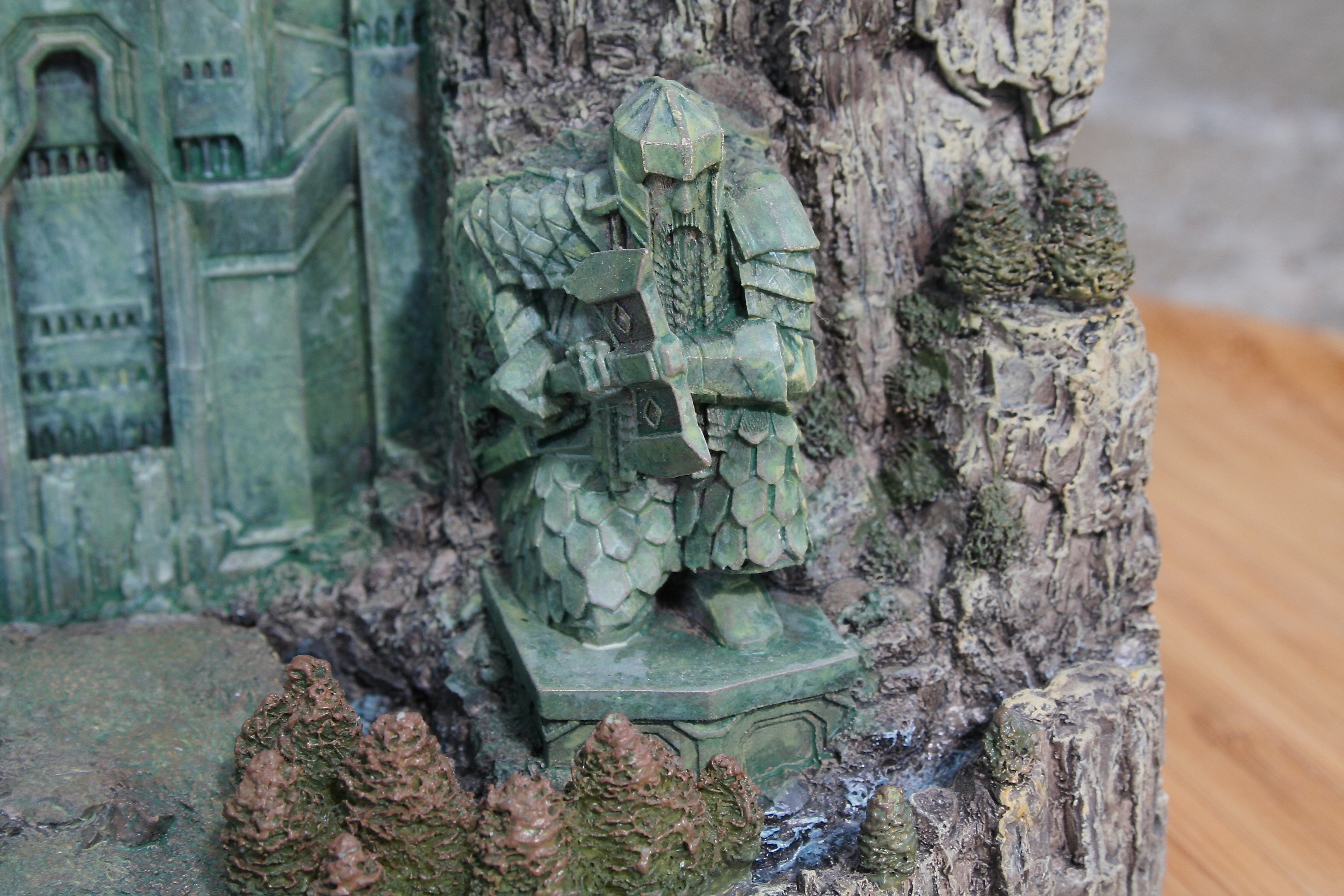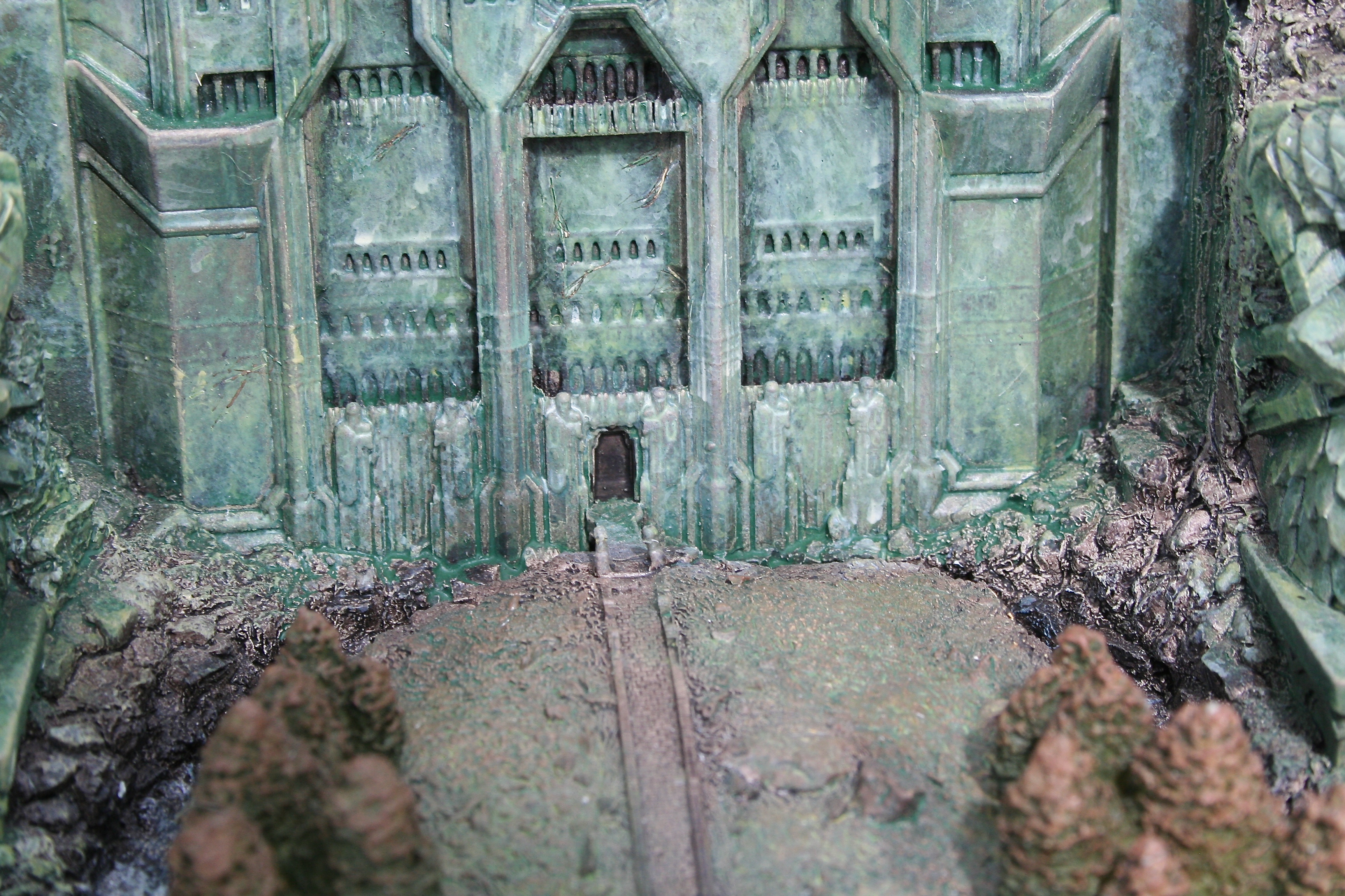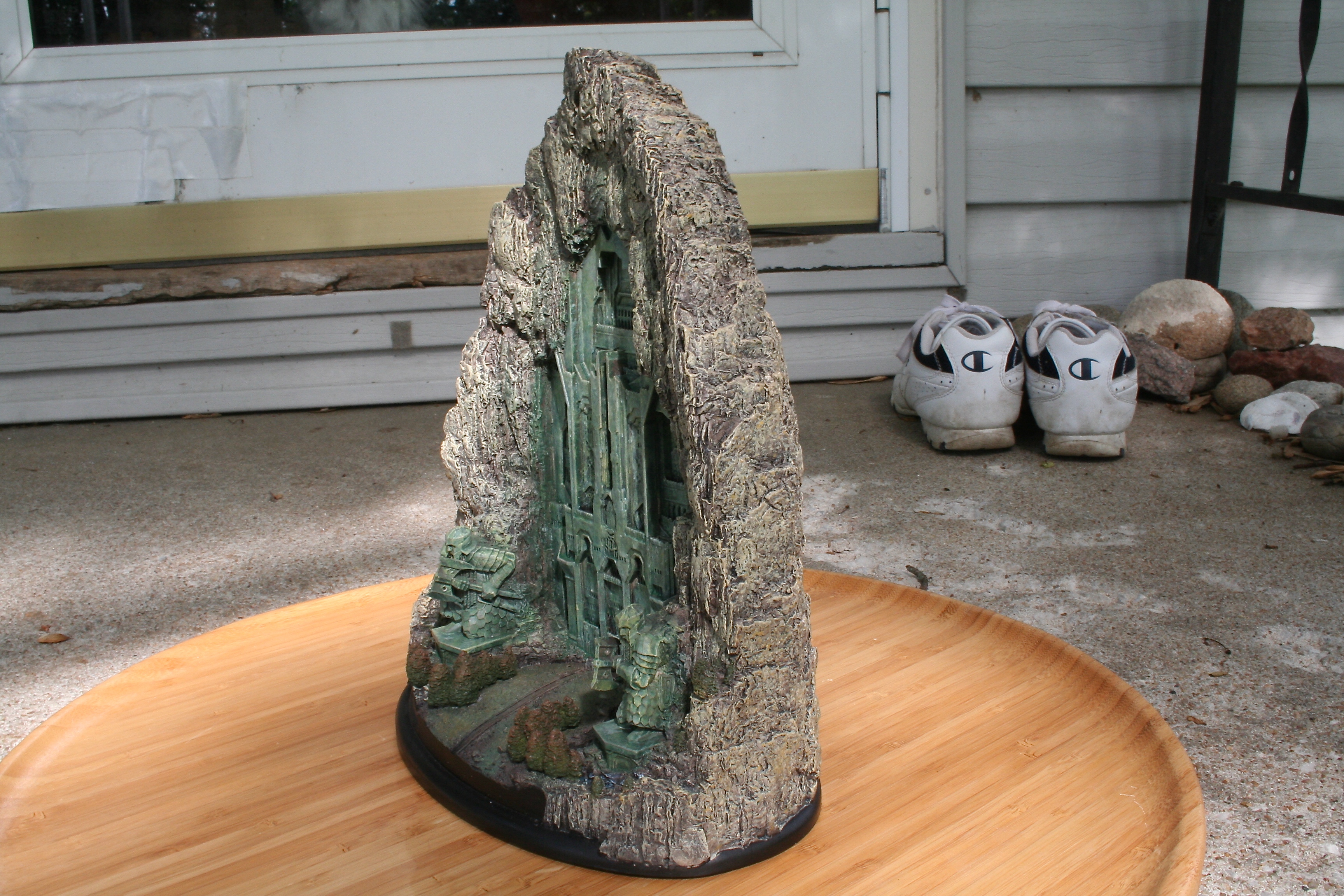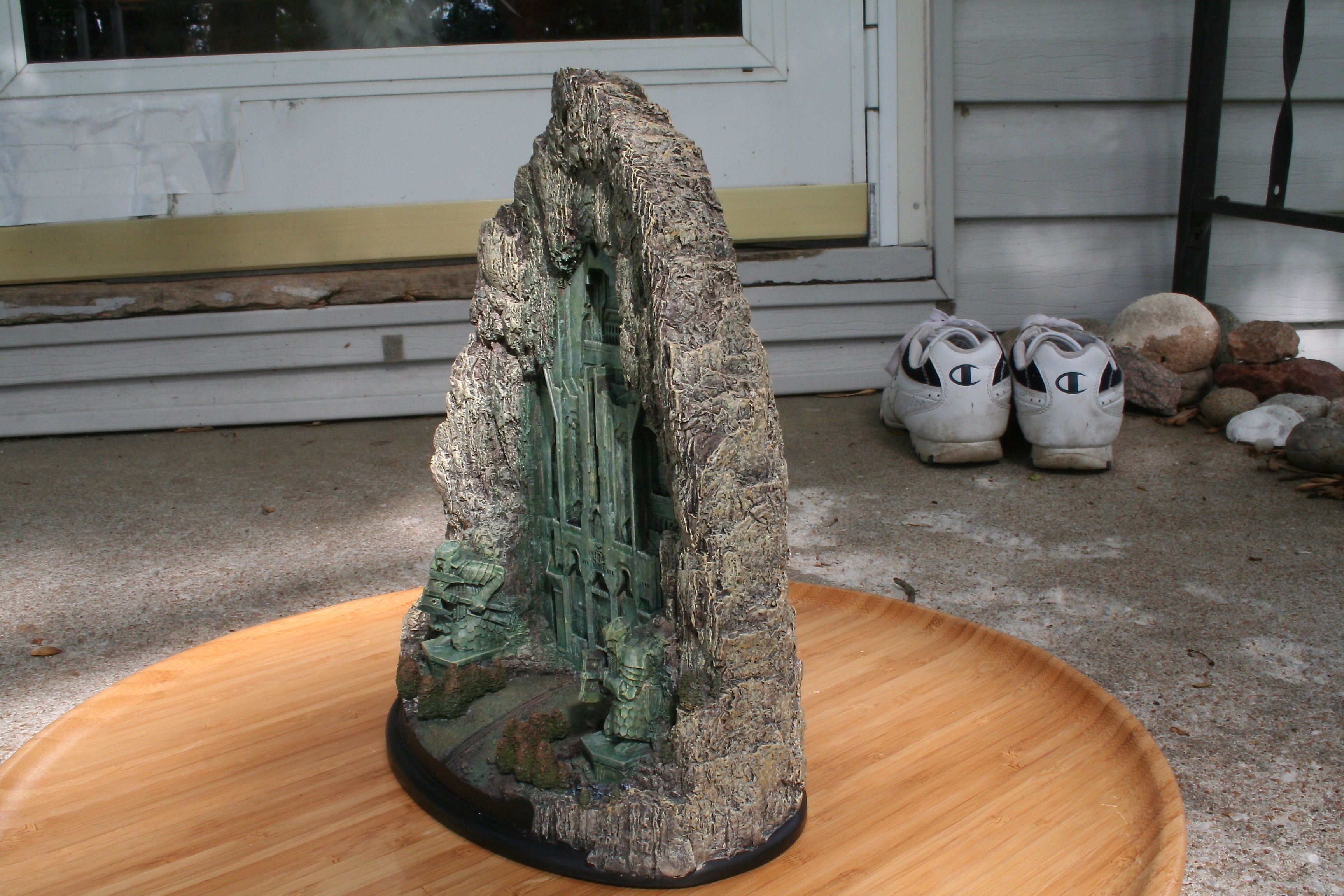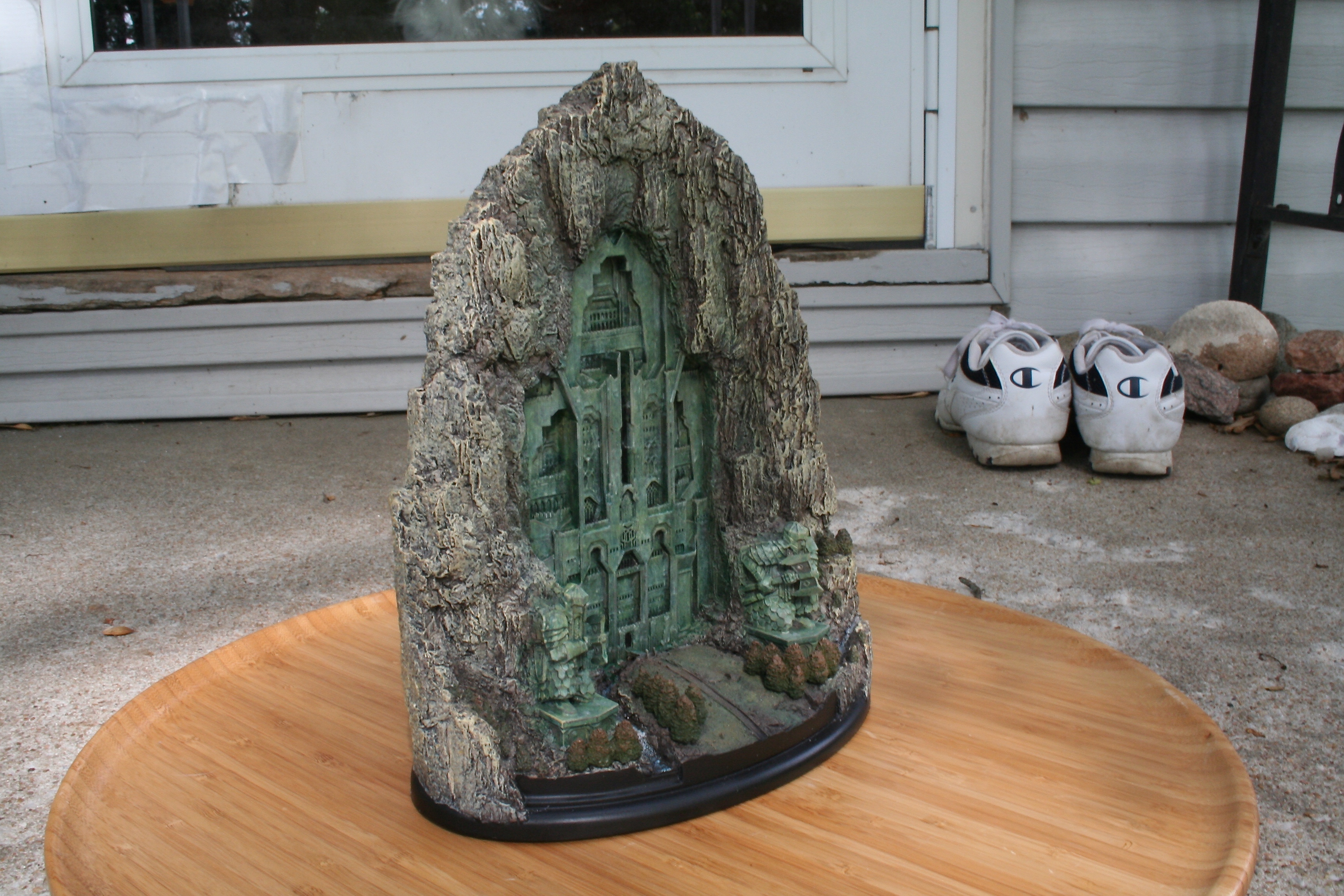 We’ve got another video review for you today, of the one environment I’ve been waiting to get my hands on since I saw The Hobbit: An Unexpected Journey in theaters. One of my favorite things about this particular environment was the front part of it that you could see standing outside the mountain, with that great Dwarven design, as well as those amazing Dwarven Guards. Finally, after a long wait we can now add at least this part of Erebor – with hopefully more to come, with something similar to the Moria Environment from The Lord of the Rings statue line. The Front Gate of Erebor comes in at $199 as well as being an open edition, so if you need to save a little you have some time. The size of this environment comes in at 10.6″ tall x 8.9″ wide x 5.7″ deep and weighs 6.9lbs.