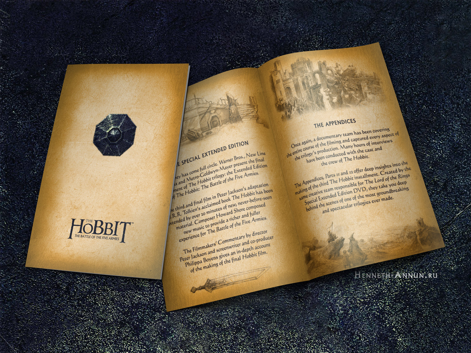 As some fans like consistency in their collections, the chief editor of the Russian tolkien website Henneth-Annun.ru, Pete “TheHutt” Klassen, began the non-commercial “Unexpected Booklet” project two years ago — designing fan booklets for The Hobbit SEEs. Each year, a new booklet was created for “The Hobbit” using the well-known LOTR SEE look and feel as well as illustrations by John Howe and Alan Lee. It is entirely free for download and self-printing, released under the Fair Use clause.
