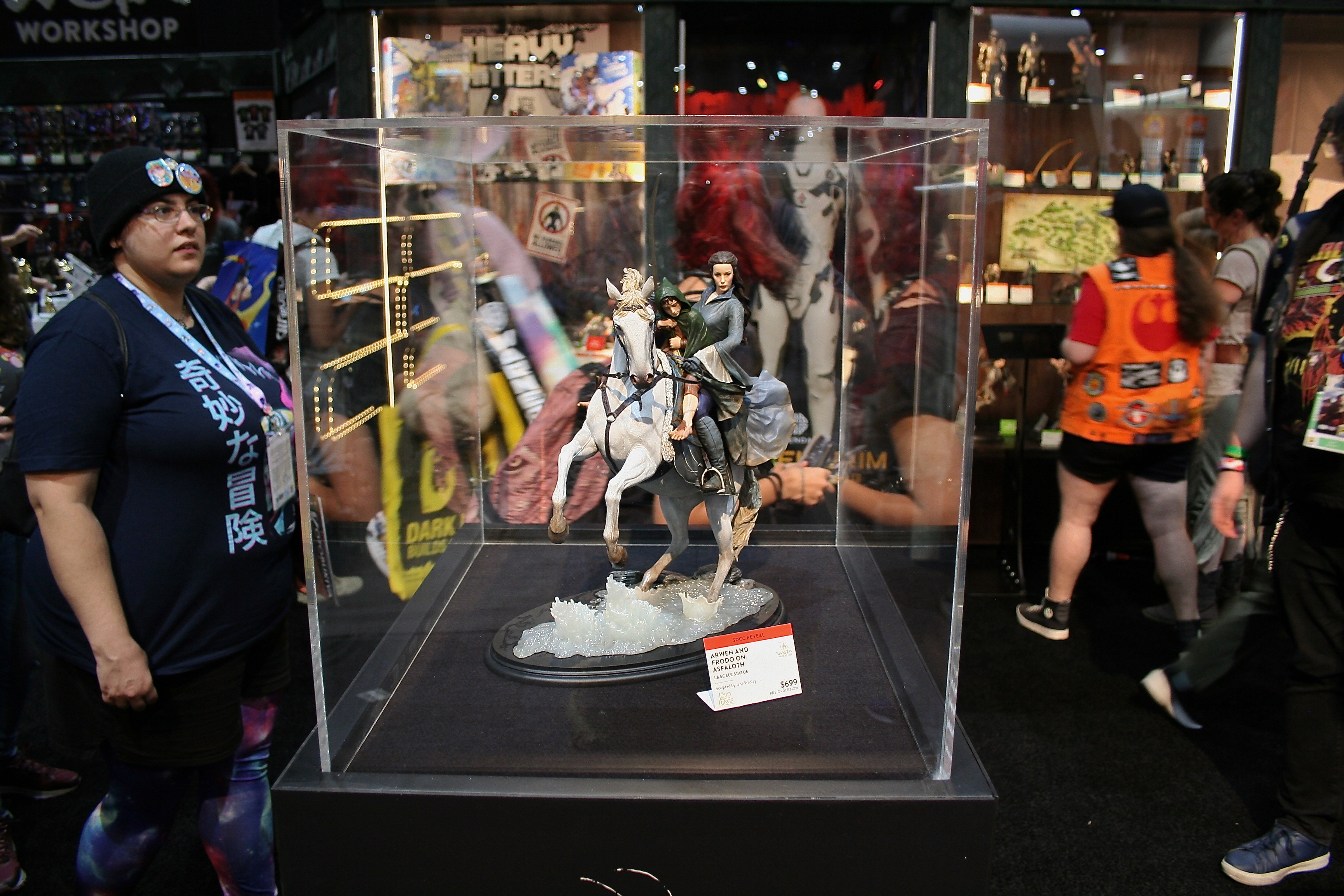 Comic-Con 2018 is in the books, and if you followed us on Social Media you had a chance to see us share what was going on at our friends at Weta Workshop’s booth. Now that I’m back, I wanted to share all the pics I took of the wonderful things I saw at their booth. They had the jaw dropping (watch a recap of the Weta live video when they unveiled the new pieces) Master Collection Treebeard, new Balrog Bust, and the stunning Arwen on Asfaloth. All of these pieces were absolutely awesome and all may end up in my collection! The one piece we can all add right now is the Arwen on Asfaloth statue. She comes in with a price tag of $699 and an edition size of 750. However, fans will have to be patient until early 2019 to get her. In the meantime please enjoy the booth tour and various shots of what amazingness was at the Weta booth.