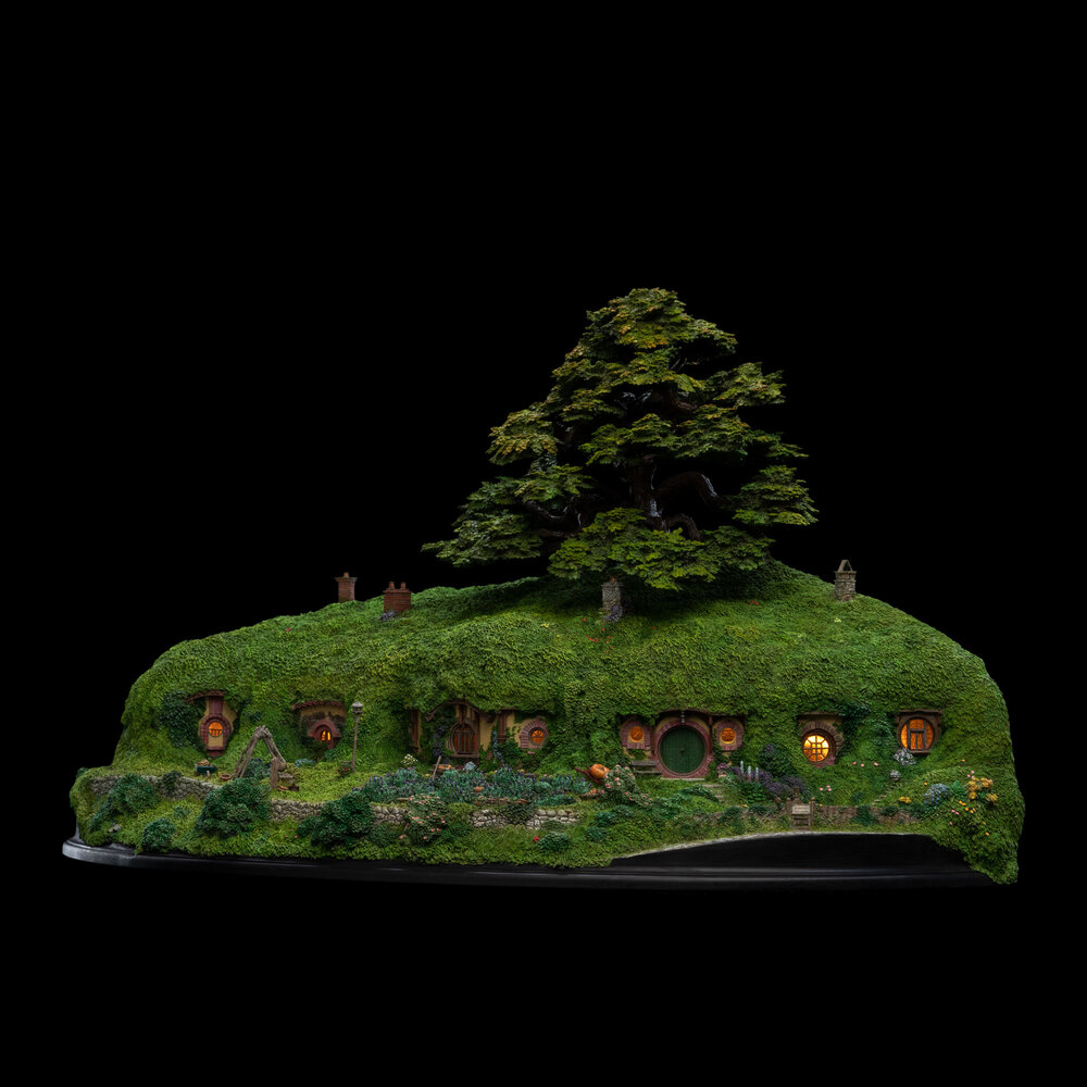 The first is a massive Bag End with that awesome green front door that opens and closes. When you open this door, you’ll be able to peek in and see the main hallway. That’s not all though! It also has a light up feature, giving the feeling that Bilbo or Frodo is at home. You can pre-order this right now through December 22nd for $1,199(USD), with the edition size being determined by the numbers of orders placed. If you want something Bag End but maybe slightly cheaper, there is a hobbit hole sized piece of Bag End for only $99(USD). Both of these pieces ship during the fourth quarter of next year.