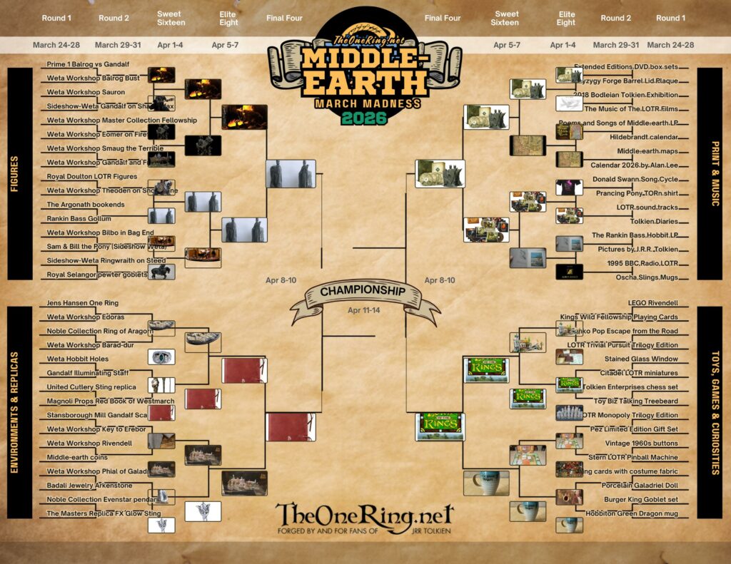 The final battles have been fought within the four regions, and now we reach the semi-final in this year’s Middle-earth March Madness – Clash of the Collectibles. Who were the winners in each of the categories?Let’s take a look: