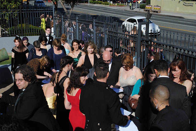LOS ANGELES — We are fully aware of how much we pumped up the One Expected Party and Art Show this past weekend. We poured our website’s resources and our personal resources into the event and then spent days in Los Angeles preparing and pulling off one amazing party (if we don’t say so ourselves) that featured every single “Hobbit” Oscar nominee before the night was over. We didn’t do it alone of course. We had Premiere helping us as a party enabler and we had others managing lights and food and drink for all the guests who showed up. We also relied on some incredible talents like Beecake featuring Billy Boyd, Charles Ross performing a portion of his One Man Lord of the Rings, friends Emerald Rose and Dorian Mirth and others who took the stage to make it all happen. Opening registration for those attending the One Expected Party in Los Angeles on Oscar night.In short, the all-volunteer staff of TheOneRing poured lifeblood there. We also broadcast the event live online so many thousands (at least) more could enjoy the event from home. We will be working hard to pay the bills from the show. So that is why it is especially nice when a media outlet notices what we did and shares that with a wider audience. LA Weekly has some nice photos and words to say about our event and since we aren’t the ones saying it, it provides an excellent outside perspective. Thanks again to the many people who helped us make this event happen. Other media outlets have asked for information about the event (PR@TheOneRing.net) so there may be more to share. We have also posted galleries on Facebook and sent out Twitter phones (@TheOneRingNet) all during the event.