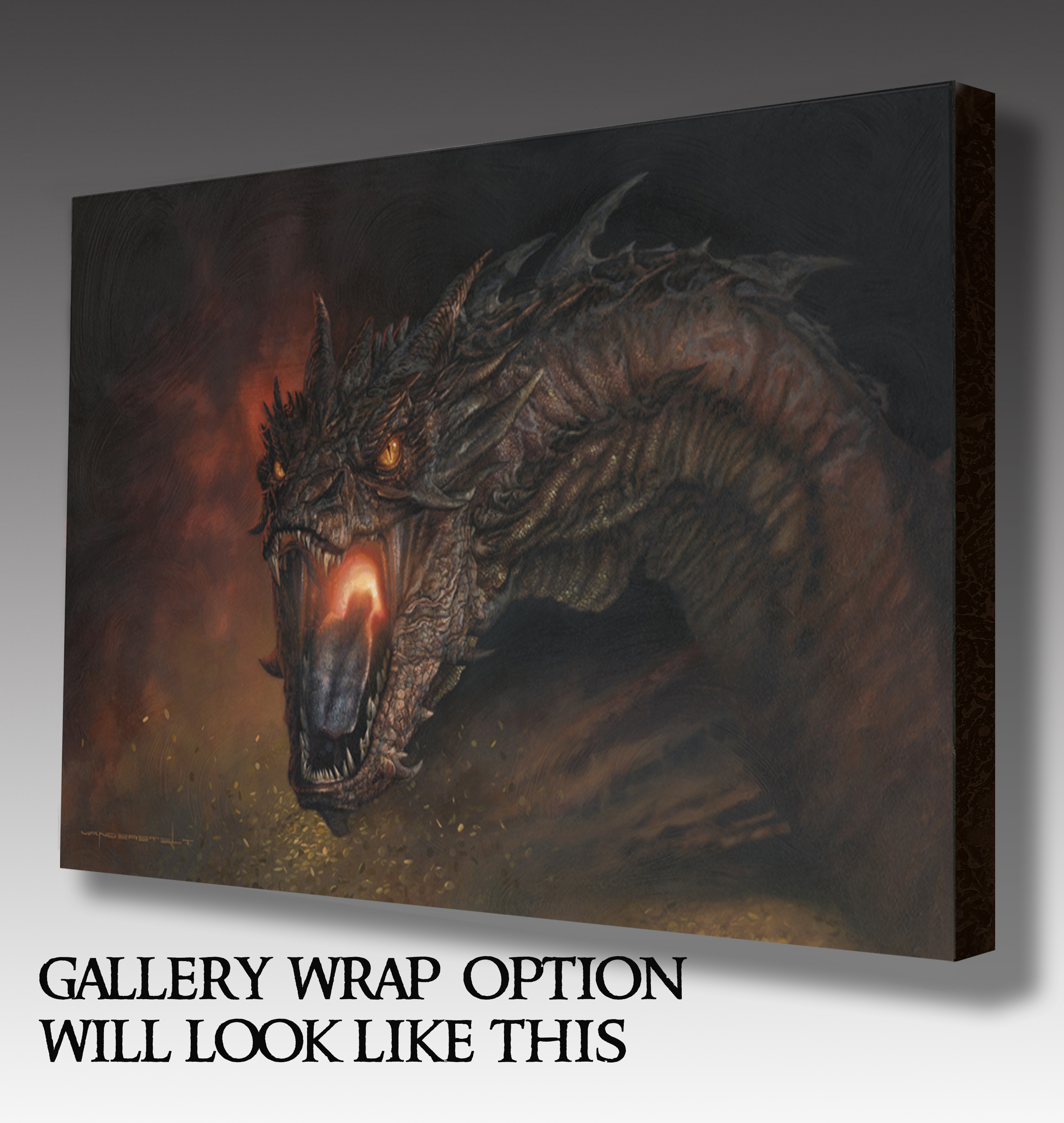 Our friend, Artist Jerry Vanderstelt, has a brand new print ready for fans to add to their growing Middle-earth collections. If you’ve been wanting to own something Smaug specific, after seeing just how great he was in The Hobbit: The Desolation of Smaug, then today is your lucky day. You can now order an amazing print capturing Smaug the Terrible in this stunning portrait. This print gives incredible detail of the face of Smaug, with such great attention paid to the eyes, teeth, scales, fire, and even the gold being flung around by Smaug as he deals with Bilbo Baggins. As always Jerry offers this print in various sizes ranging from a 16×20 print for $35 to a Canvas Gallery Wrapped Giclee for $280. No matter which choice you go with you’ll be adding the best Smaug-centric piece on the market!