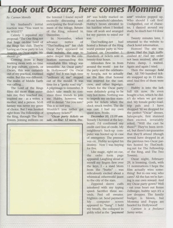 In the first of a series of Scrapbook articles, we will be looking at brief moments from previous parties, some from the planning phase, the production phase, or reviews from fellow fans who have attended. While digging through some of our old photos, I came across something a little different. This was a story written in a small town paper by a woman who had decided to try and attend our Return of the One Party in 2004 and conveys her excitement at the prospect. With the tickets and support page opening up tomorrow, this seemed a very appropriate Scrapbook reminder. You can read her story from this below.