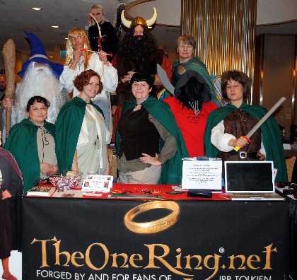 Yes, TheOneRing.net was present again this year at one of the world’s biggest fan-based convention. Staffers from TORn ran a table over the course of the weekend, where we had the great pleasure of chatting to fans, meeting regular TORn visitors, catching up with old friends and faithful supporters, and introducing newbies to the joys of the website. Over the four days of the convention we gave out freebies, distributed candy to those brave enough to answer Tolkien trivia, sold t-shirts to help keep the website attending conventions and events, and provided the fun of the ‘Don’t you know you’re [sic] Sam?’ photo opportunity! Apologies Samwise fans, but we decapitated Sam in a hobbit standee, so folks could pose with their head in his place; and all kinds of aliens, cartoon characters, heroes and villains stepped up over the weekend to